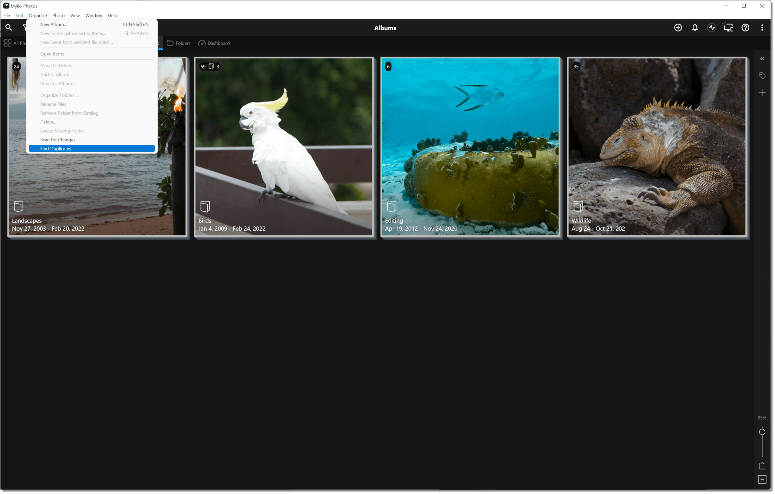 In this last update, Mylio has introduced a de-duplicate feature. Just as the name suggests, it seeks out and locates duplicate photos and folders of photos.