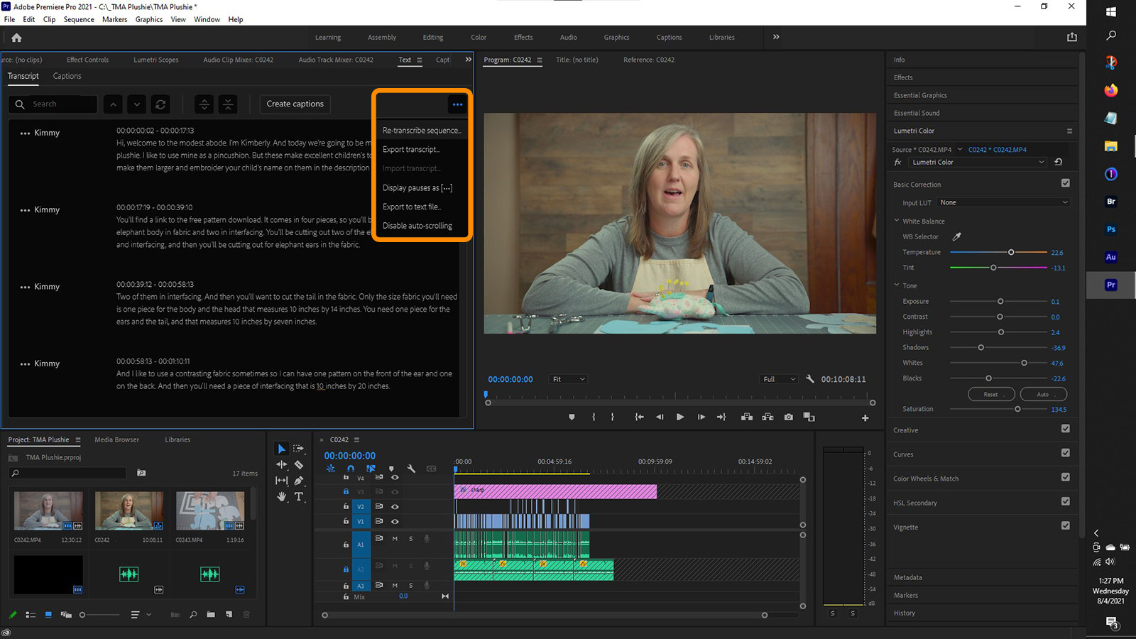 The best part is you don’t even have to render. Simply open a project in Premiere, verify audio and video are in sync and start transcribing.