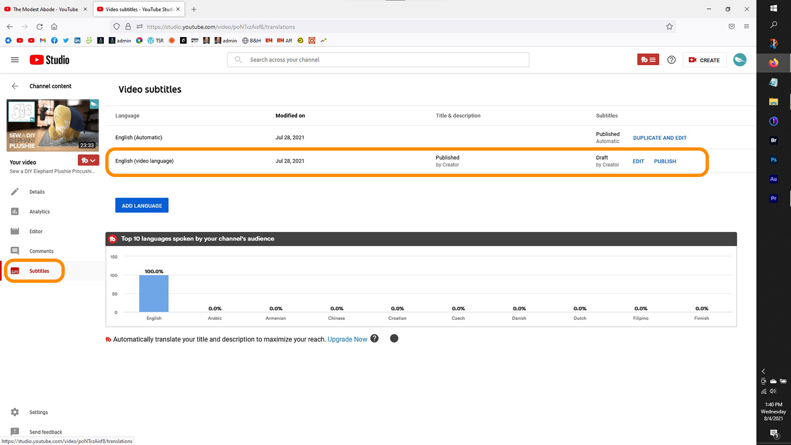 It’s important to note that the YouTube subtitle interface does not currently support SRT upload, but this is likely to change in the future. It does handle text transcripts nicely, in my experience, when retrofitting existing projects.