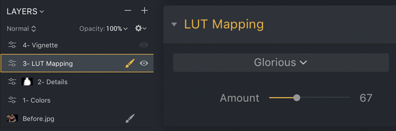 I love the native LUTs choice Aurora offers. I went for the one named “Glorious” and toned down to 67 instead of 100.