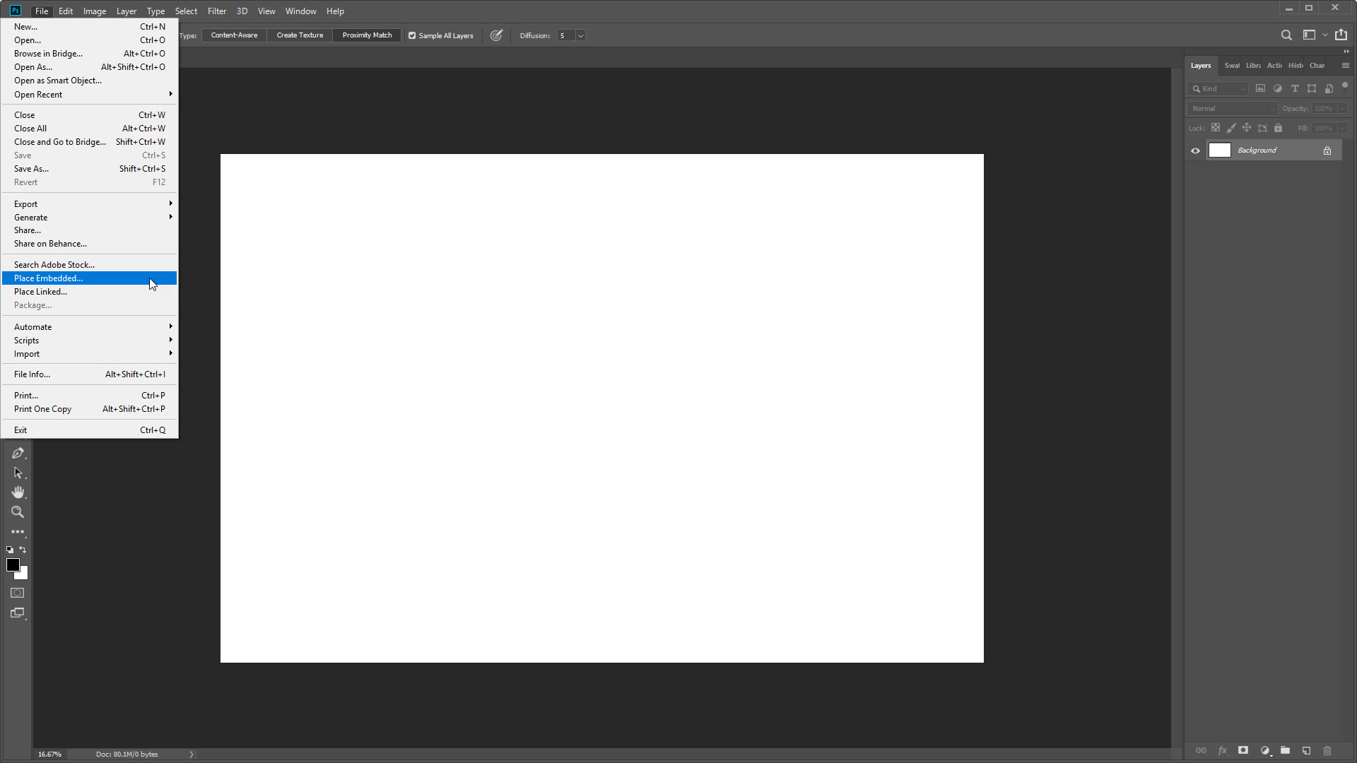 Step 2: Place the background and football player images in the new document. Click File > Place Embedded. Browse your computer for the images and click the Place button to place the images in the document as a Smart Object. A Smart Object is a container that holds the contents of a layer. You’ll see why this is a great feature in a moment.