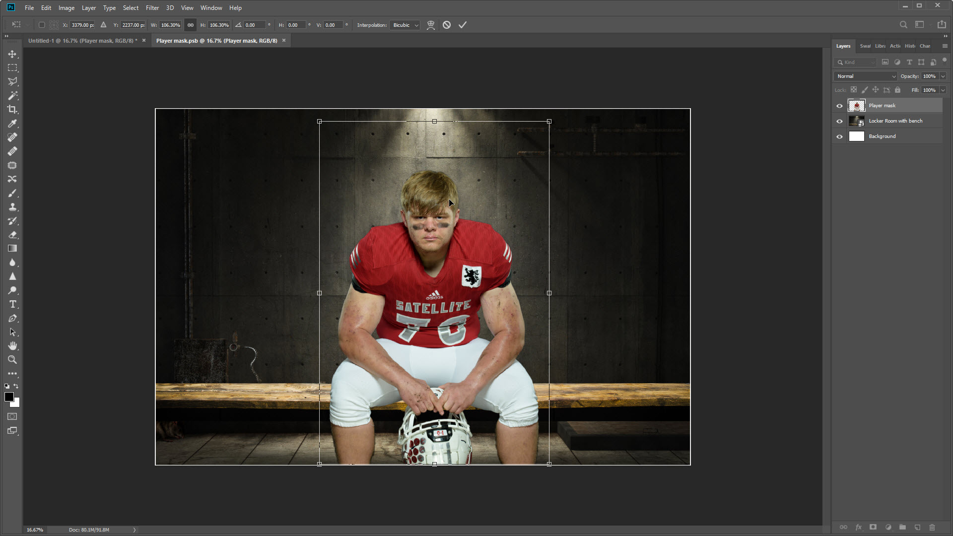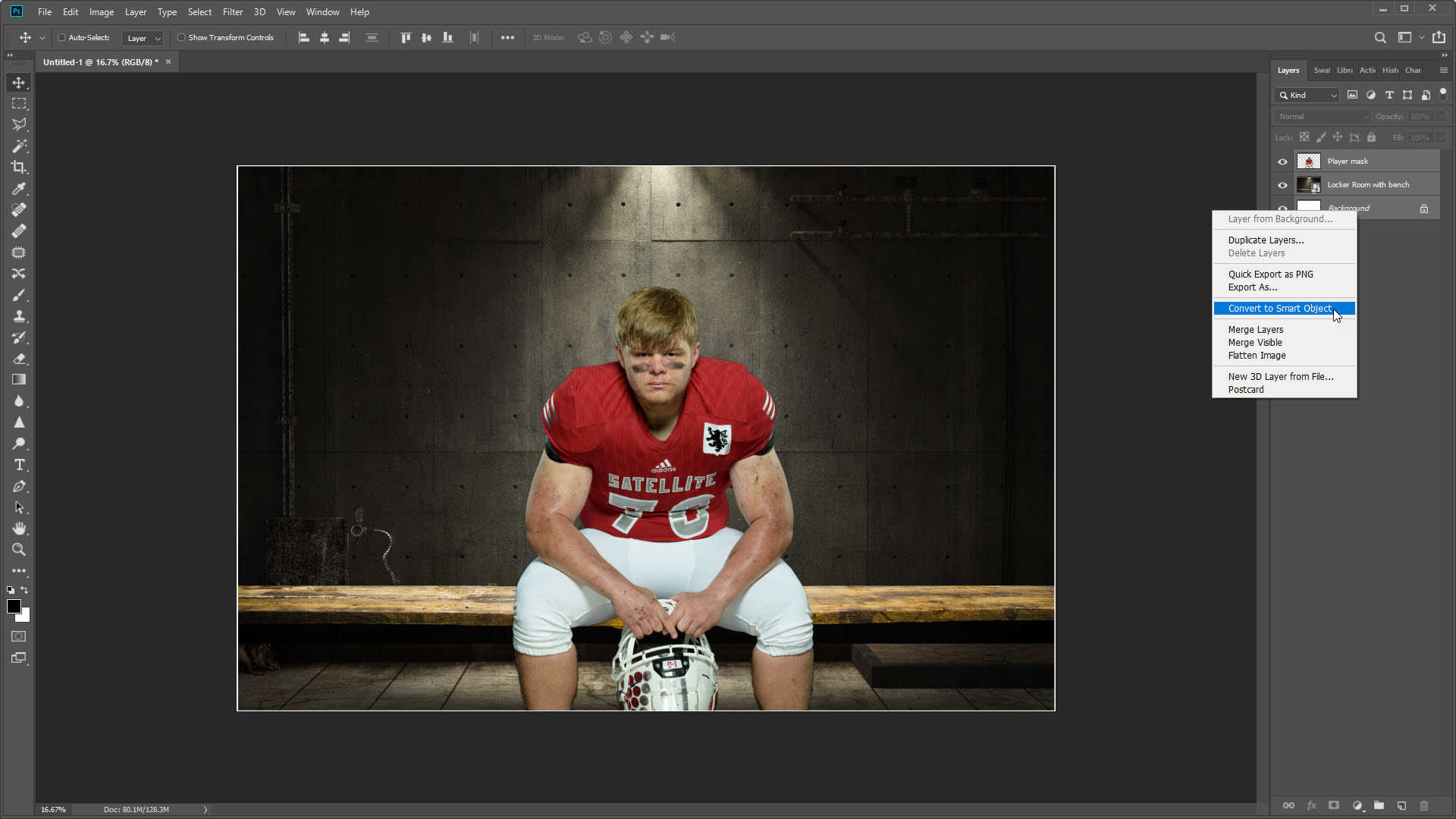 Step 5: Resize or make changes to Smart Object. Here’s a great example of showing the power of Smart Objects and Smart Filters. The football player appears a little small. Here’s how to resize him without having to start over.