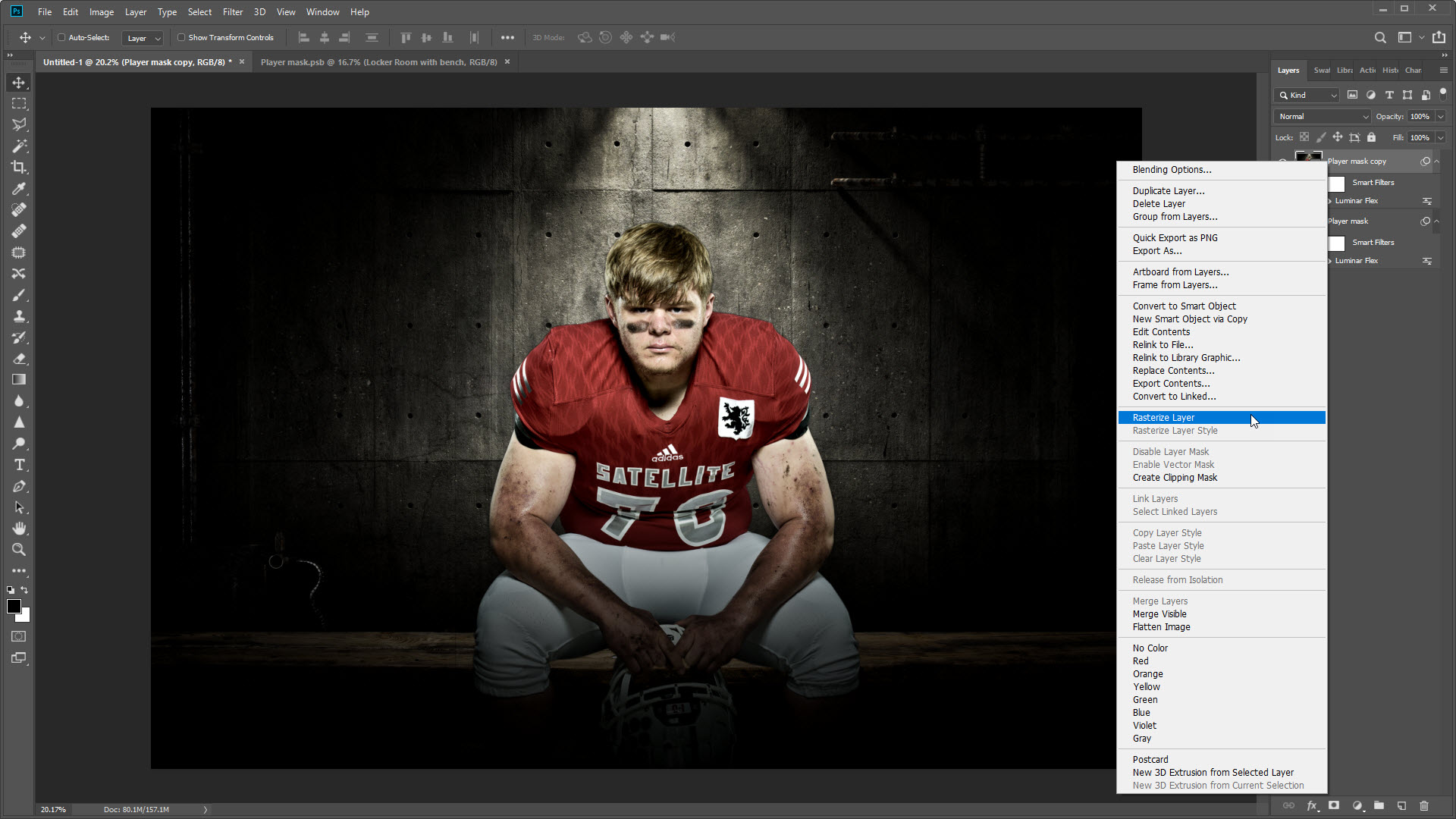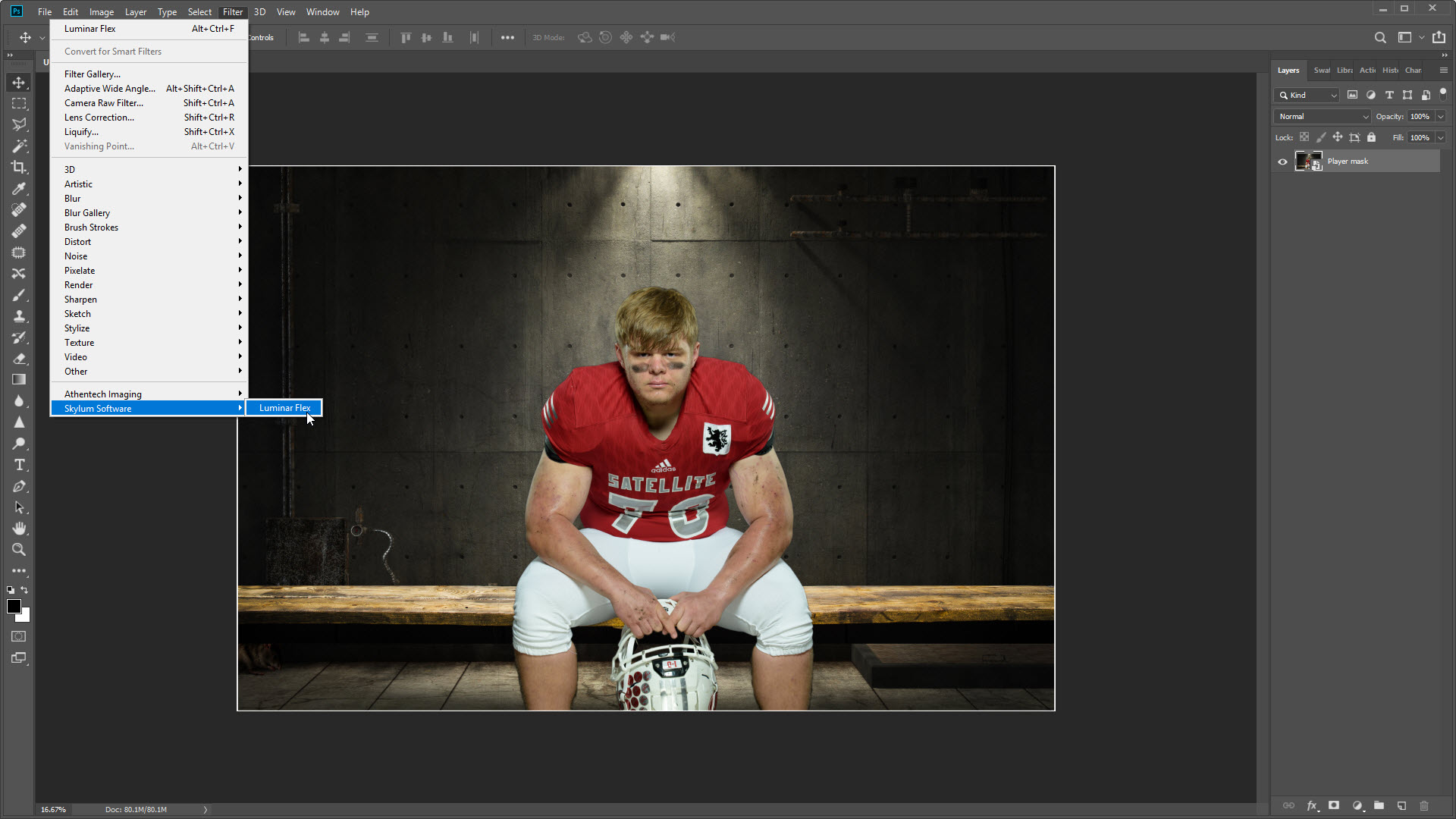 Advance masking is what Photoshop lives for. The program is designed for graphic artists with tools photographers can also use. Luminar, on the other hand, is designed for Photographers to develop and process images with graphics tools such as layers and masking to blend creativity with solid photography. In this tutorial, I’ll show you how to create an editable poster of a football player using Photoshop and Luminar Flex as a Smart Object and Smart Filter. Let’s get started.