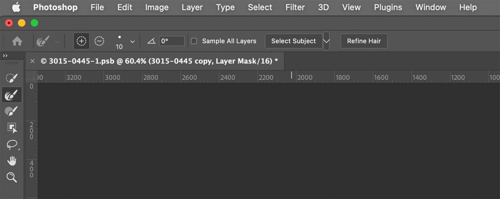 The fairly new Object Selection tool is ideal for making the initial selection. This tool is nested with the Magic Wand and the Quick Selection tools. The shortcut to cycle through these tools is Shift + W.