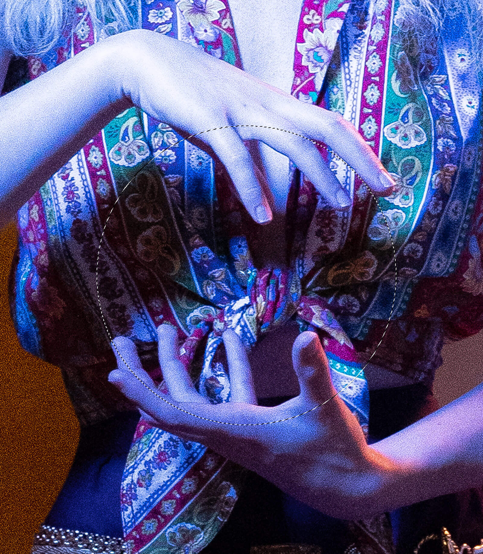 I carefully positioned the circular selection to match her fingers. I knew that it would cover some of them at the beginning.
