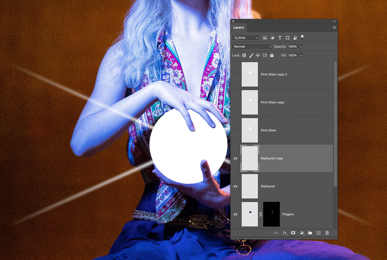 I turned the glow layers’ eye icons on to finish the crystal ball Aria holds in the opening photo of this article.