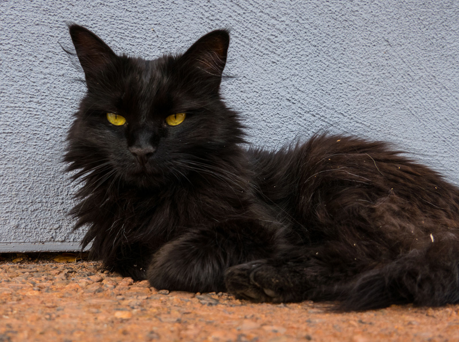 This cat came one day and knocked on our front door. Literally. It was a feral cat the neighbor had started to feed. The neighbor had young screaming (and sometimes ornery) children that made the cat flee to our home. We have since been trained to be its caretaker.
