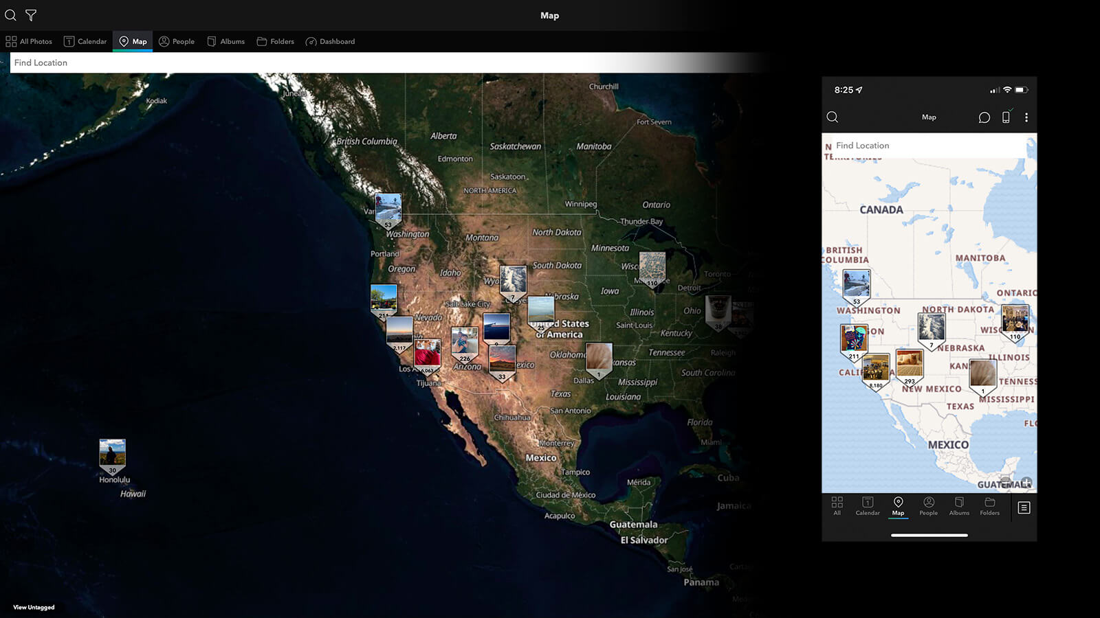 Mylio also offers several ways to browse your photos. The Calendar View automatically shows your photos on a calendar based on metadata. The Map View shows a map with thumbnails of your photos using embedded GPS data. People View features sophisticated facial recognition to help you create collections of all your favorite people.