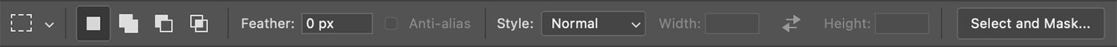 - Style: For the Rectangular Marquee tool and Elliptical Marquee tool, you can choose from three styles in the Options bar:
