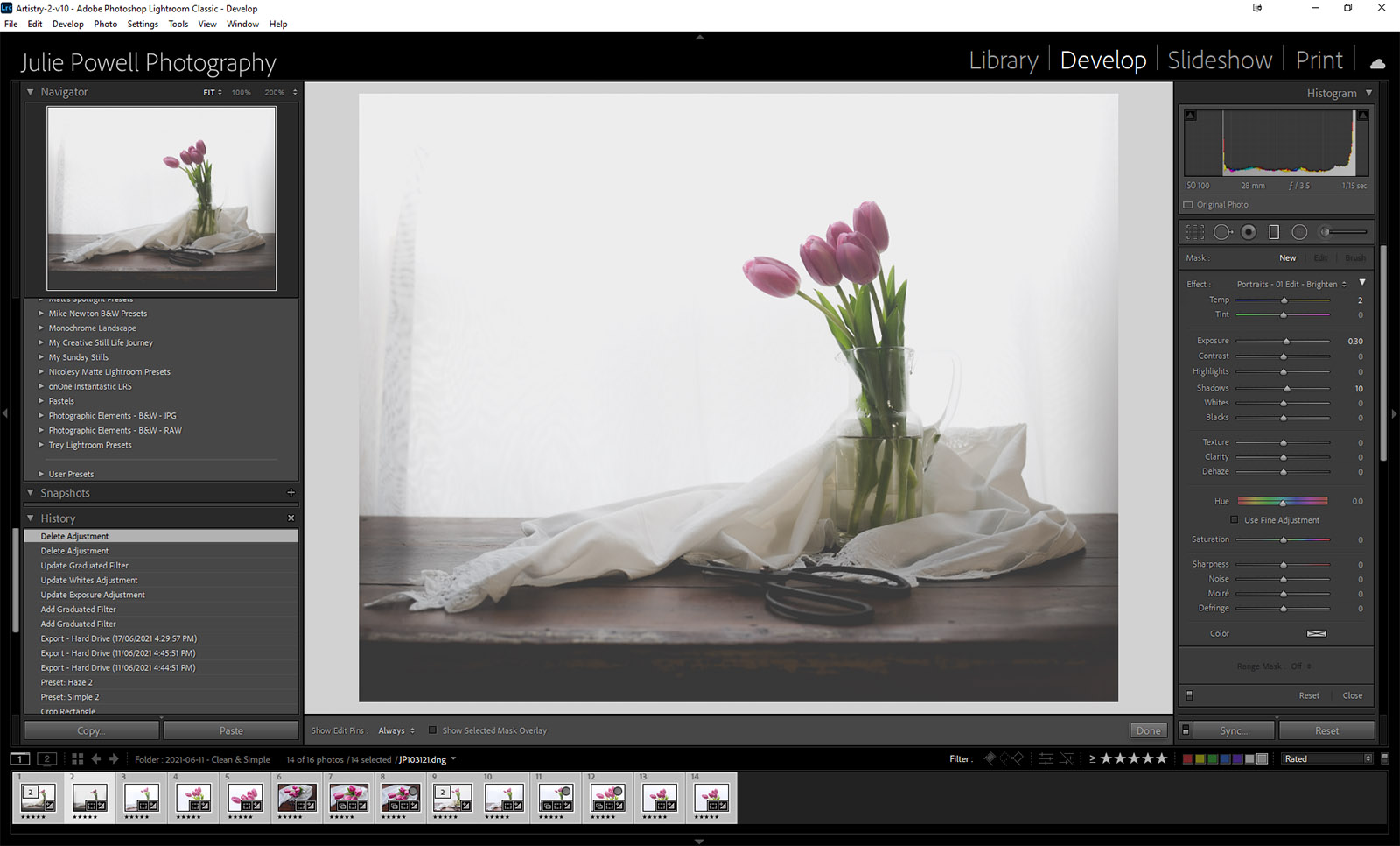Once you have your filter set, you can then select from the various sliders to edit your selection. This includes Highlights, Shadows, Exposure, Contrast, etc. to add depth and dimension to your image, or to recover highlights and shadows.