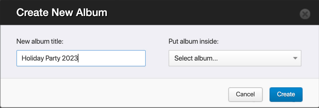 - Name your album (e.g. “Holiday Party 2023”)