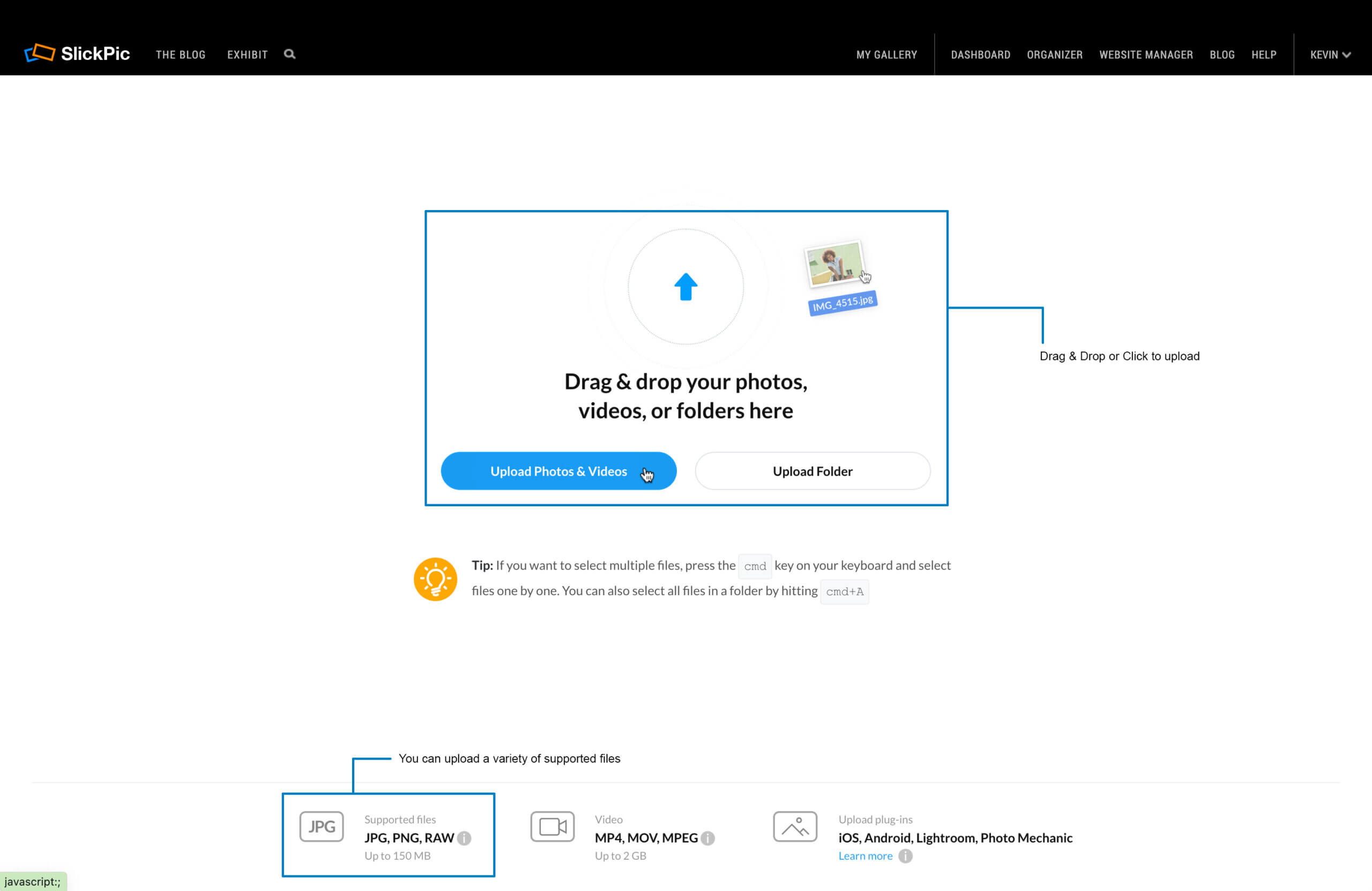 If you haven’t used SlickPic before, head over to www.slickpic.com and sign up for a free 14-day trial account (no credit card required!). You’ll be presented with some nifty “quick start” tips and a series of emails that will help you understand what the platform is all about. But I’m here to give you just the essentials.