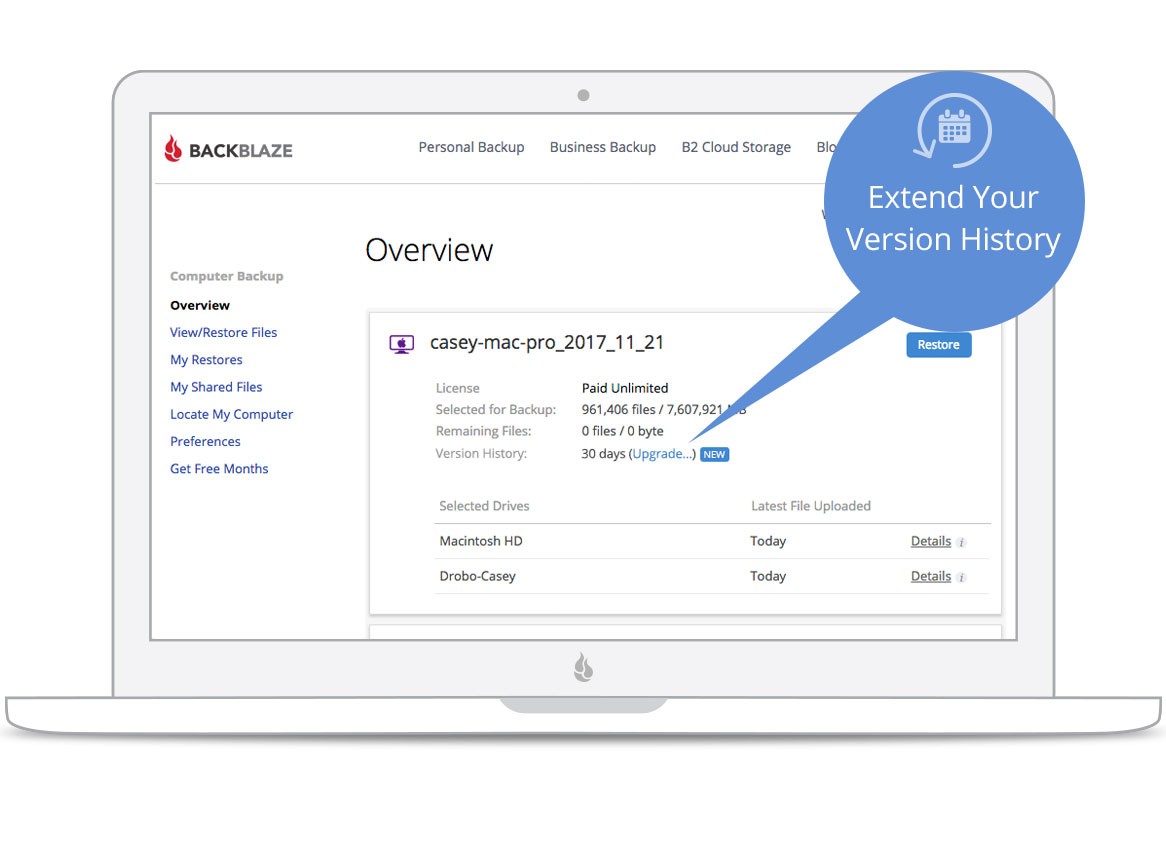 In addition to offering extended version history, Backblaze 7.0 includes a variety of updates for all users.