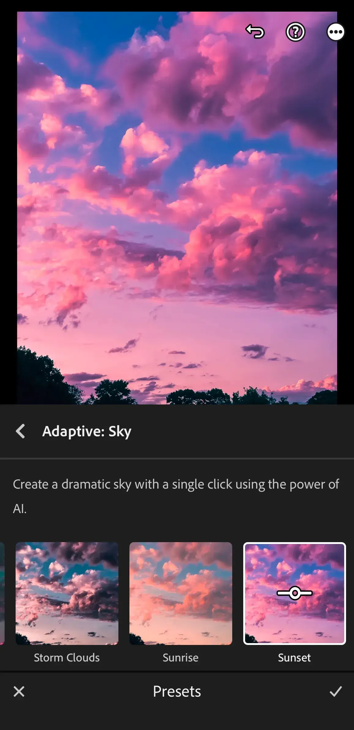 You can now access the power of AI masks for Sky and Subject on mobile through Adaptive Presets. With one tap, Lightroom can detect and create an adaptive mask based on the contents of the image.