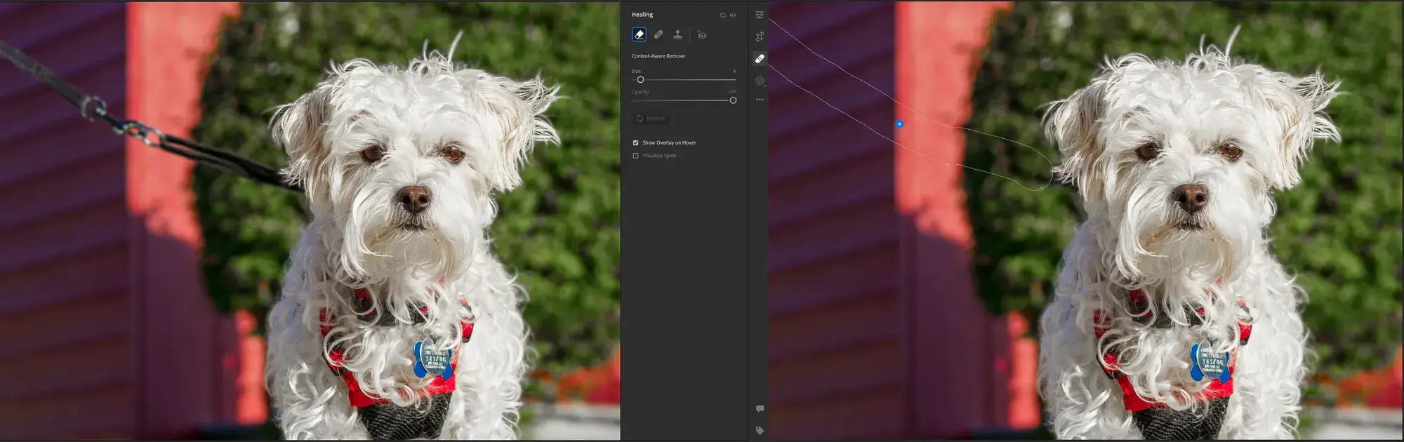 Healing or removing distractions is easier than ever in Lightroom with the addition of Content-Aware Remove. Available across the Lightroom ecosystem, Content-Aware Remove utilizes the same Content-Aware technology as Adobe Photoshop. Lightroom will adaptively fill in remove blemishes based on surrounding content.