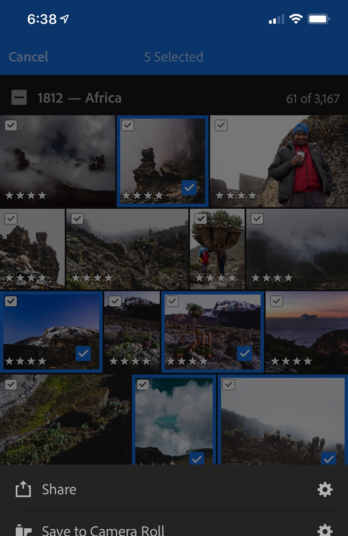 The new version of Lightroom CC for iOS makes it possible to create ad-hoc photo shares, enabling users to create an online share of photos with an arbitrary assortment of photos. Instead of creating an album and sharing that album, you can now select any number of photos that you want to share, tap the 3-dot menu at the top-right of the screen and select Share to Web. Like any other web share, you can control whether people that you share that link with can download or see the photos’ metadata.