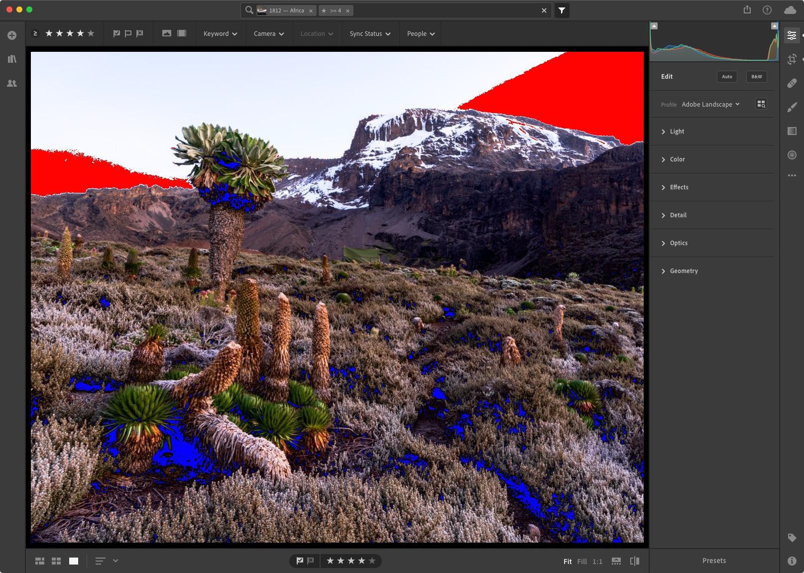 Just like in Lightroom Classic, you can now enable histogram clipping indicators, showing you areas of your photograph that have become either too bright or too dark. To enable this, click on the left (shadows clipping) or right (highlight clipping) triangles of the histogram.