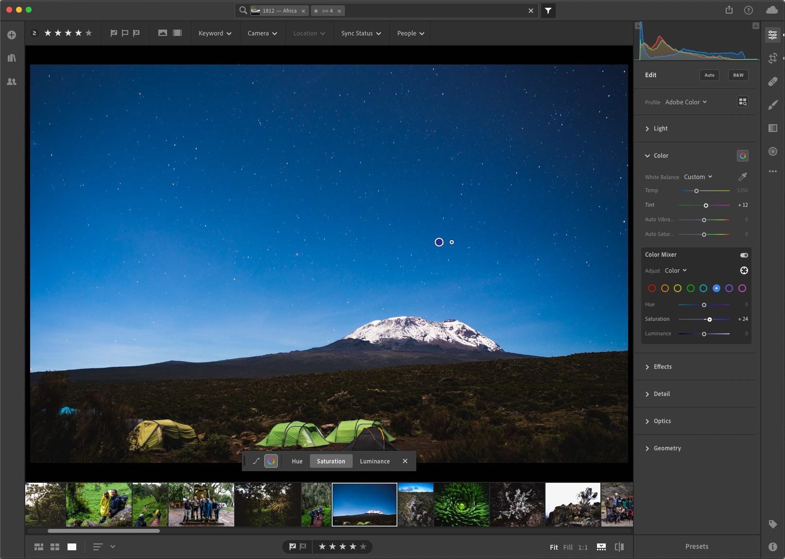 To access this, open either the Color Mixer or Tone Curve from the right editing sidebar and click on the target icon. A new control will appear at the bottom of the screen that provides control over what the tool will affect. Clicking and dragging on a photo will directly control the tool, enabling you to quickly modify different parts of your image.