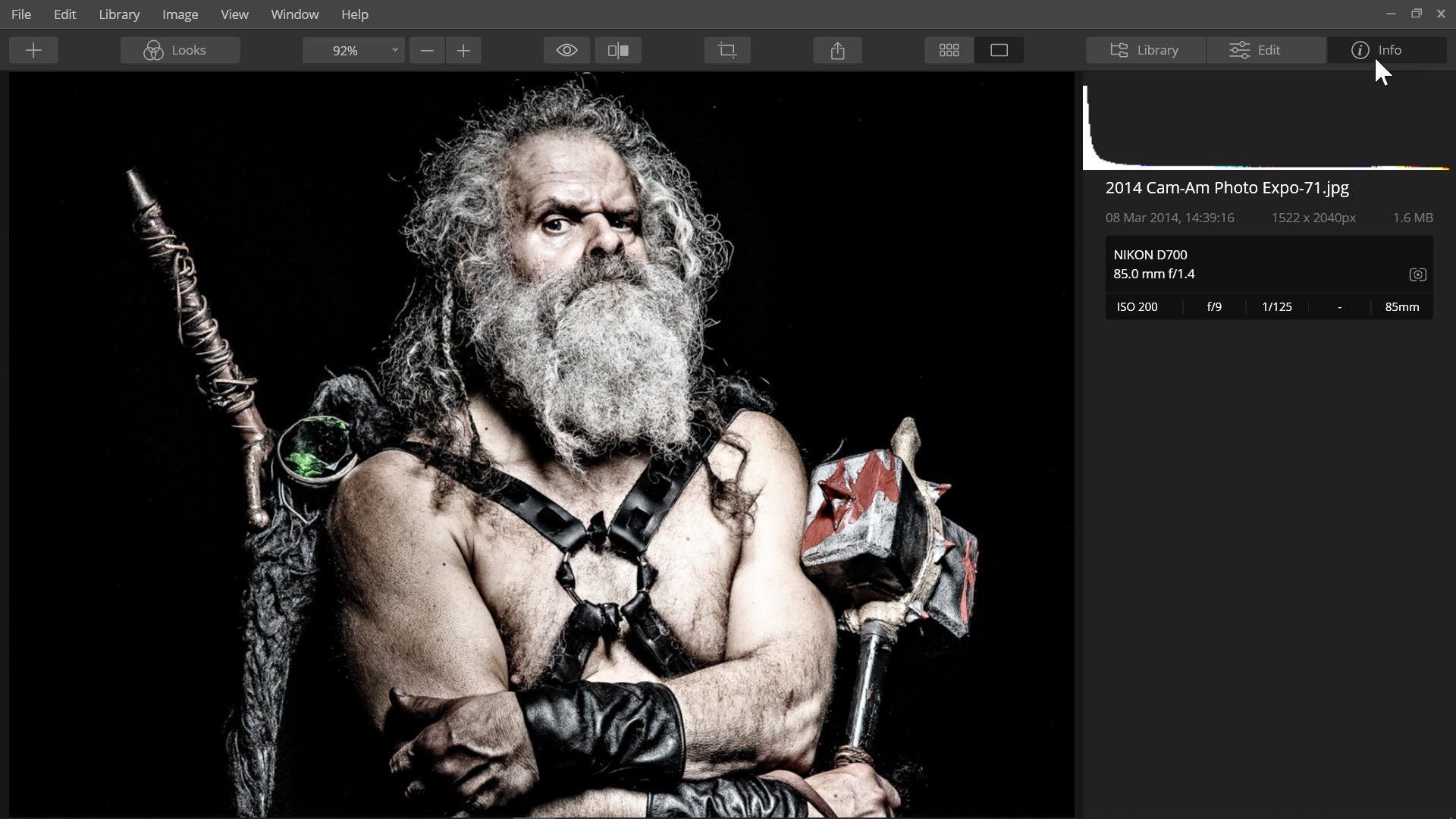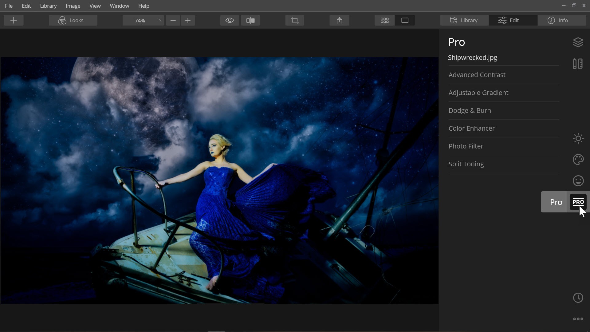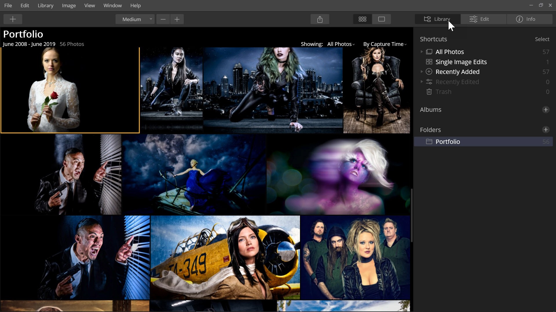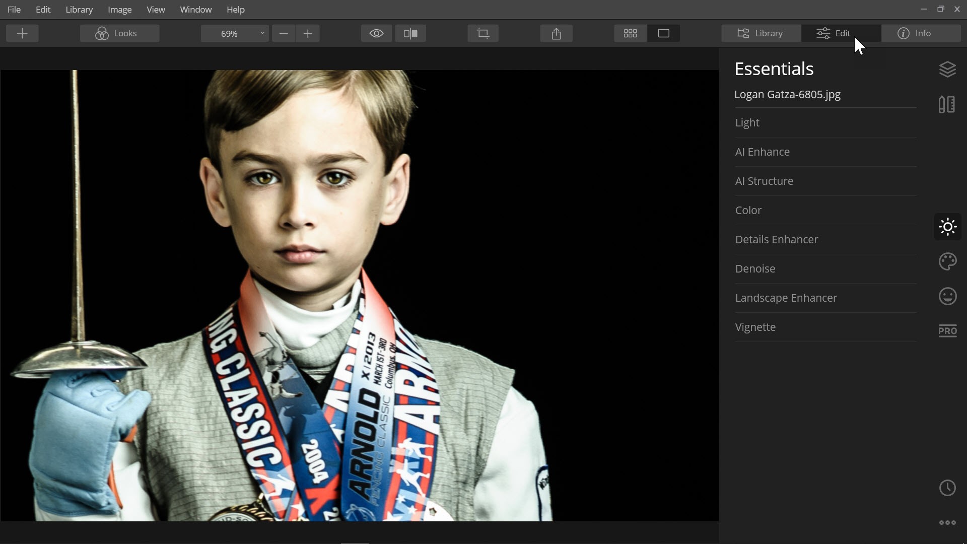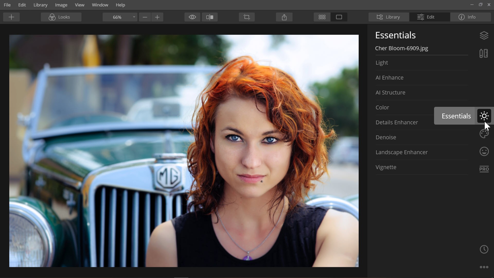 Luminar’s interface is intuitive and easy to navigate. Along the Top Toolbar are three viewing tabs; Library, Edit and Info. You can view the tab’s panel by clicking on the name of the tab.