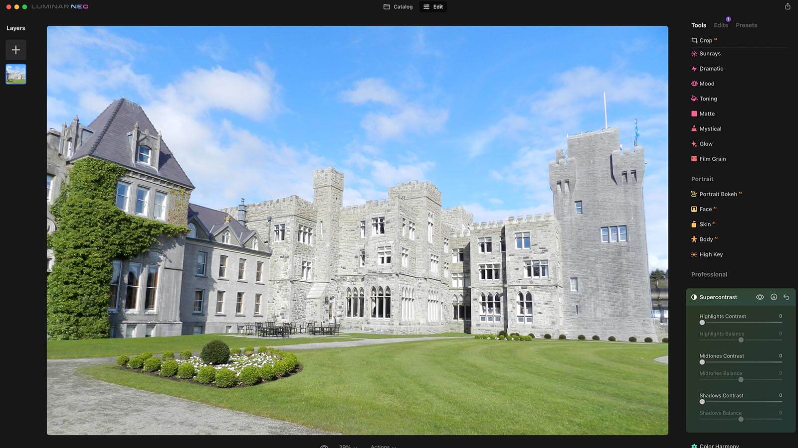 Luminar Neo‘s interface offers many tools, so it may be easy to overlook the Supercontrast tool hiding down at the bottom in the Professional tools. But don’t think for one second that this tool is any less important. Supercontrast is all about giving you control.