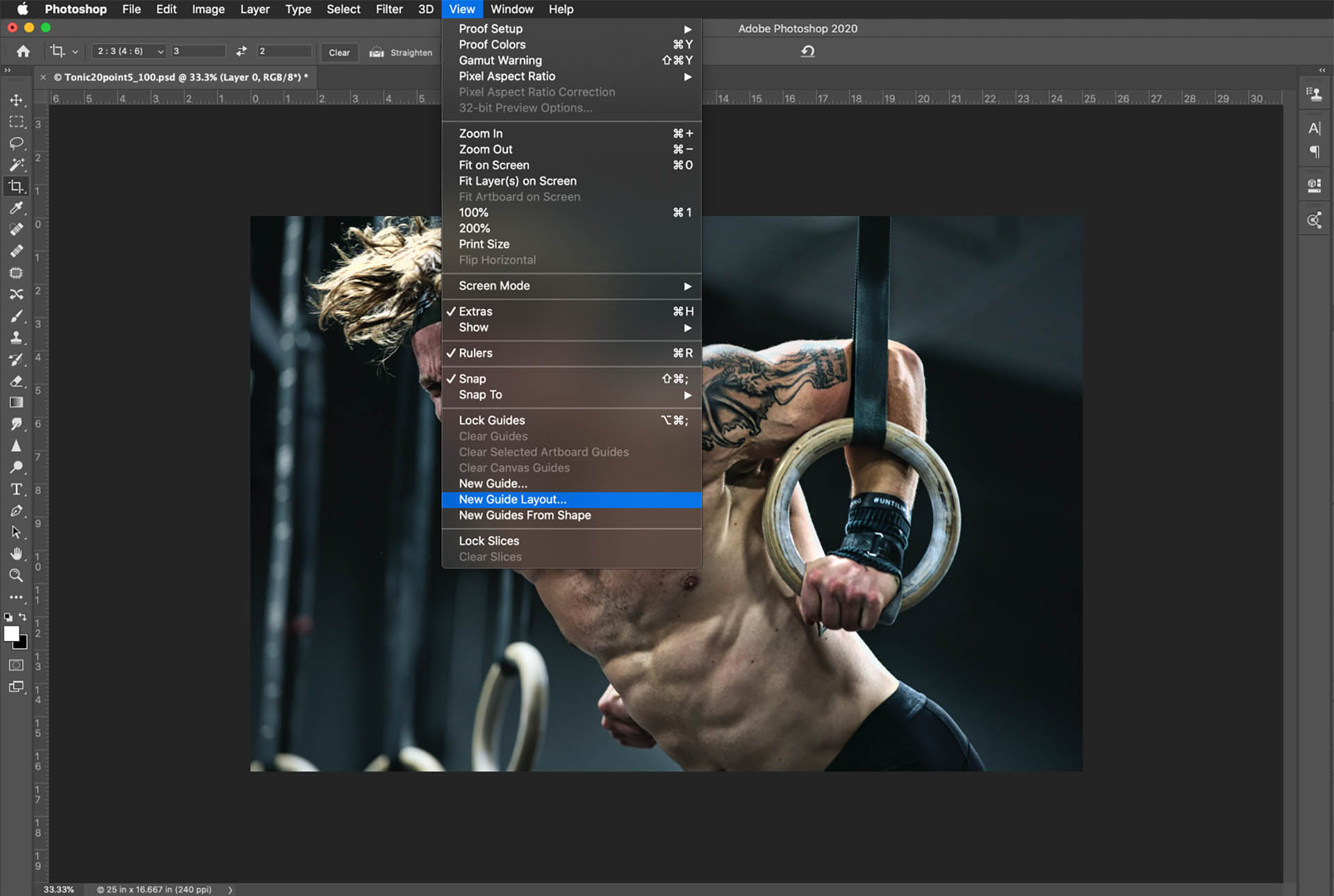 Go to Photoshop‘s View menu and click on New Guide Layout …