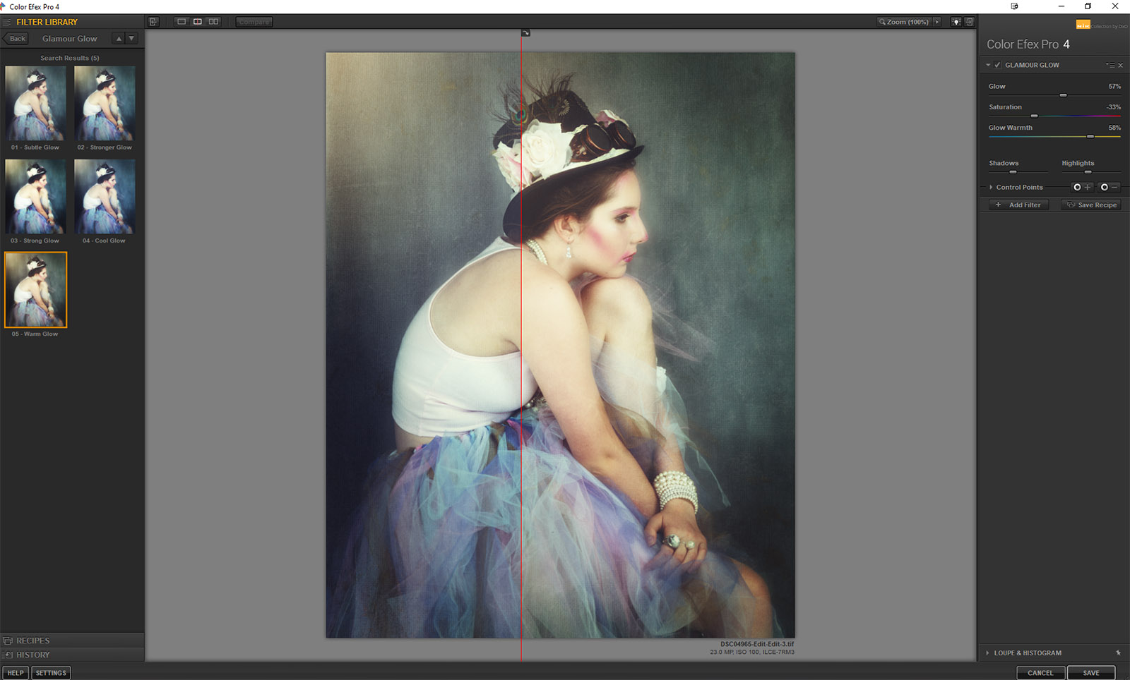 The control points can elevate the basic presets as far as you wish, to create your own unique look and save your own recipes for future use.