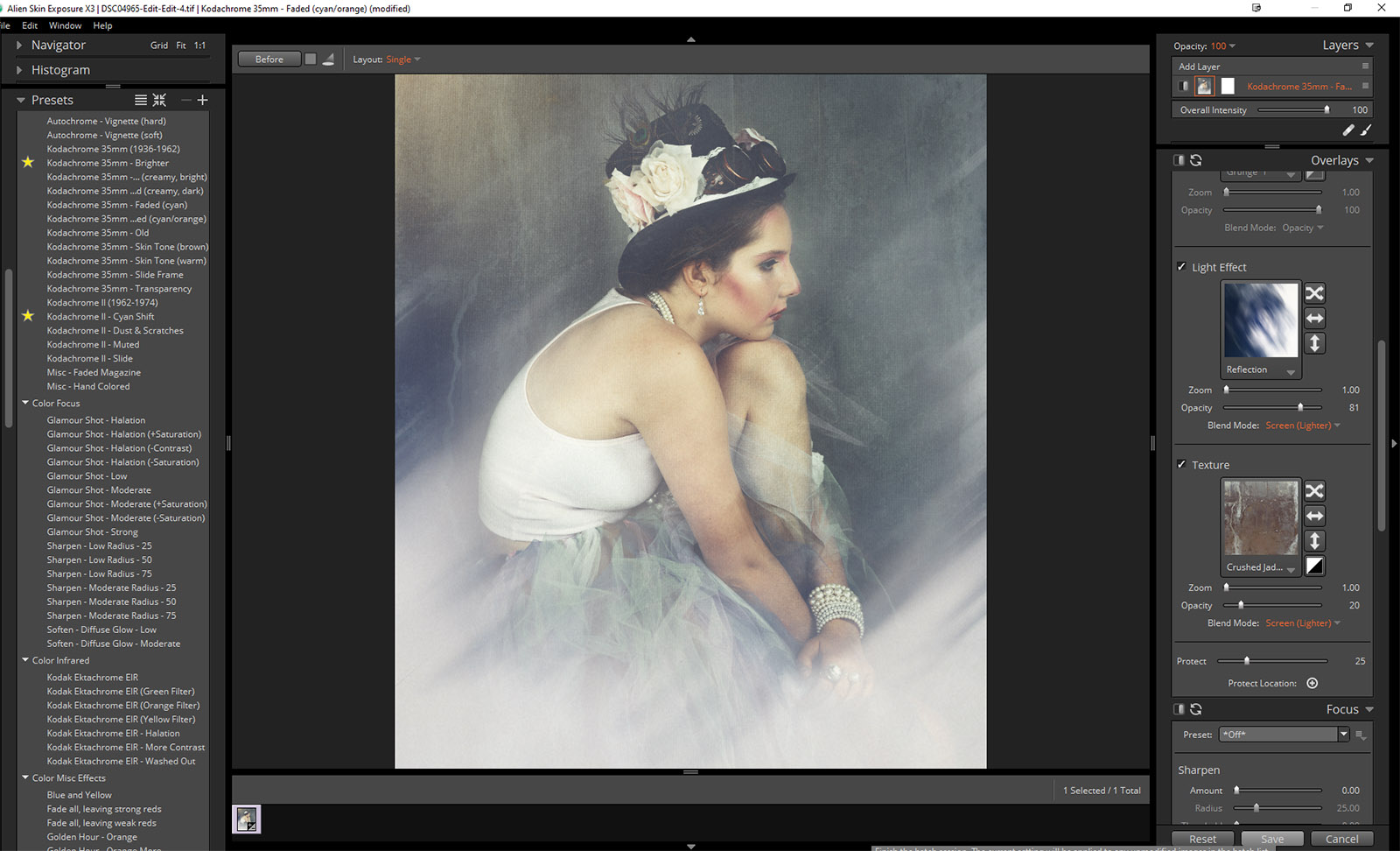 Analog Efex Pro offers a variety of vintage camera types, as well as custom settings. Think vintage analog camera looks and you will probably find it here. Analog Efex Pro’s Wet Plate, Multi-Lens, Double Exposure, Toy Camera and other presets can really elevate your image into another world.
