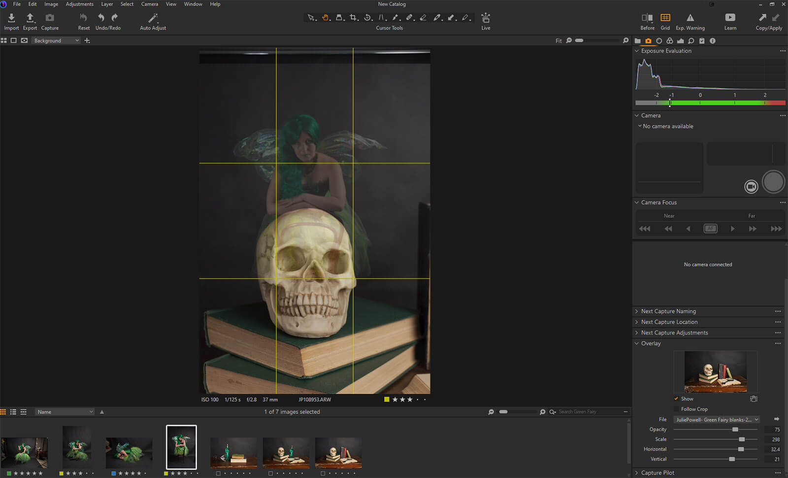 What is the Overlay tool? Toward the bottom of the Capture panel, you will find the Overlay panel. This can be done while tethering (the best option in my opinion) or with images already captured. All you need to do is load your base image and then load your secondary image over the top. I saved my base image to the desktop and loaded it from there.