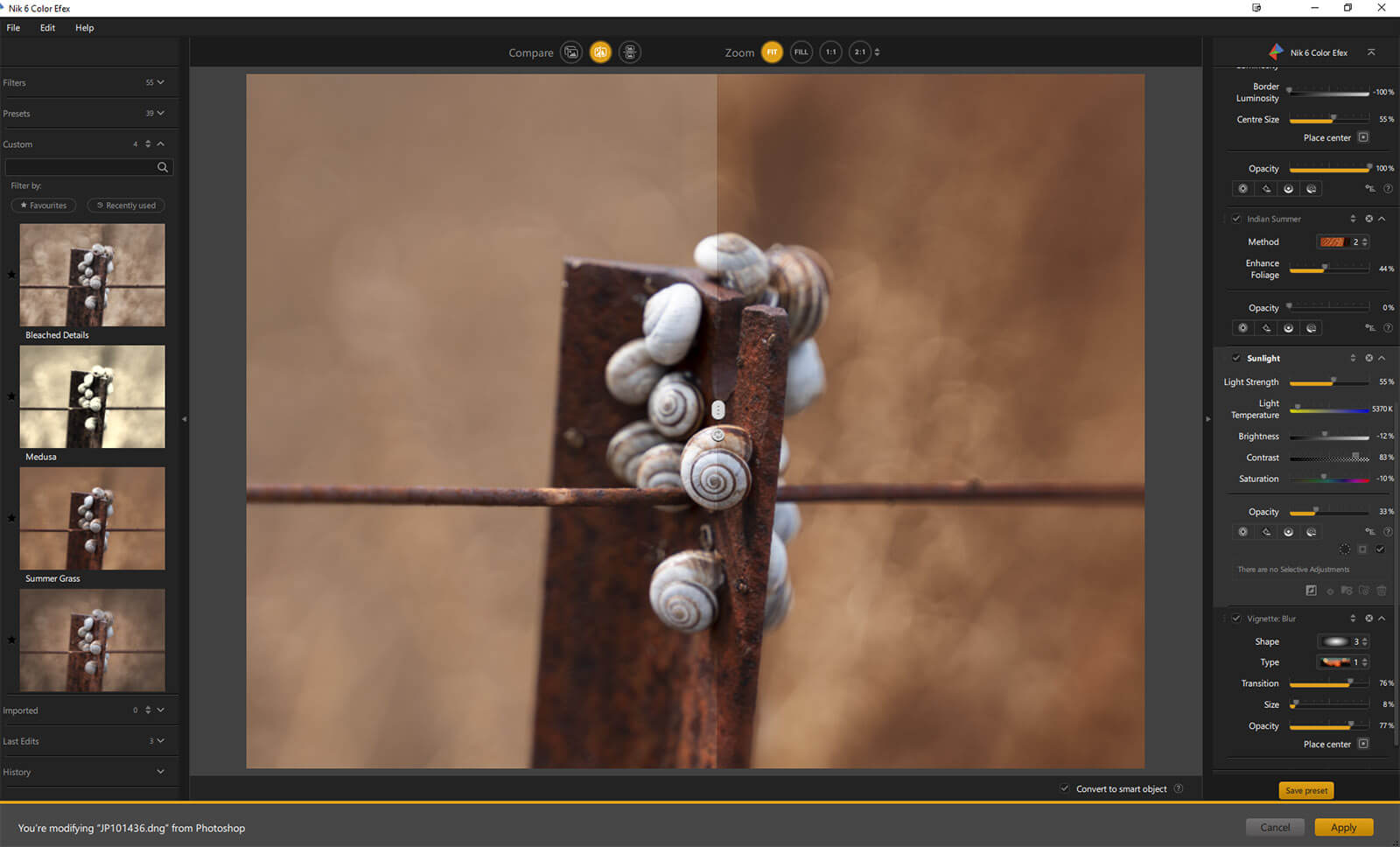 Use various presets to make your own personalized custom presets, which can be saved to use again and again. Use U-point technology to really hone in on the exact intensity of sliders in specific areas. You also have the ability to stack filters and create smart objects to continue to work on your image from Photoshop, and so much more.