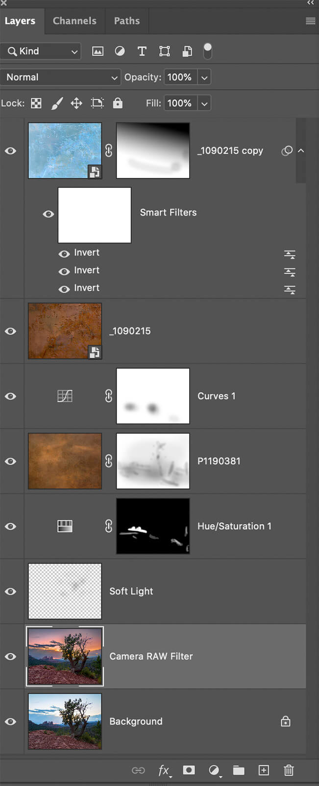 I’m a big fan of blend modes and layers in Adobe Photoshop. When you add a texture utilizing different blend modes the feel of a scene can change drastically. It takes practice and lots of experimentation, and the use of opacity, layers and masks to make this technique work well.