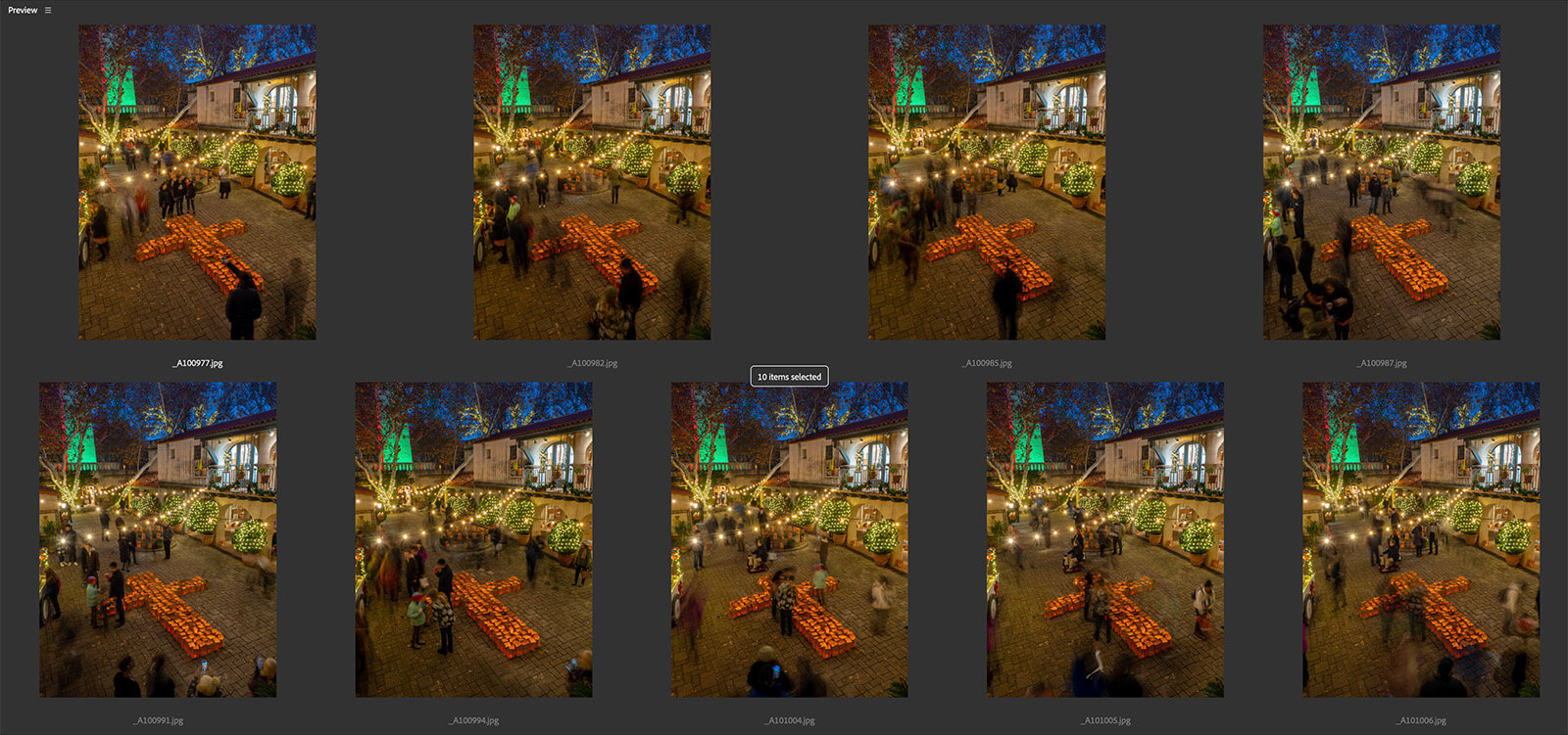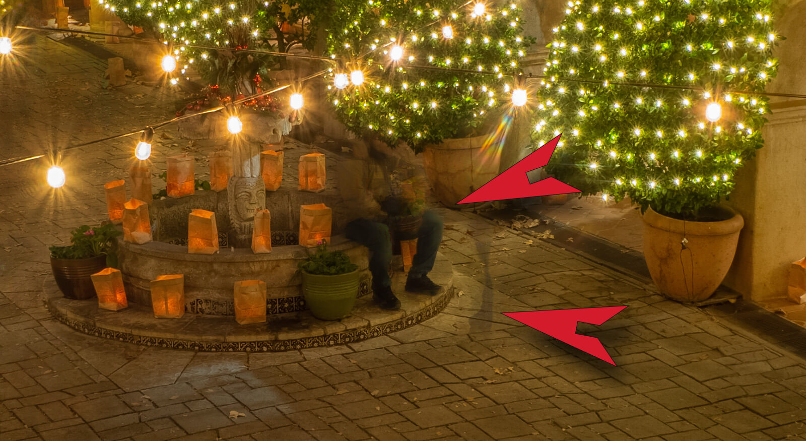 When making your image captures try to envision that all areas are uncovered at one time or another. If there is a constant person who does not move they will be considered part of the landscape and be rendered into the final image. If you have a little bit of foot traffic you can photograph and shoot only when areas are uncovered. You’ll need less images and processing time and file size will be less.