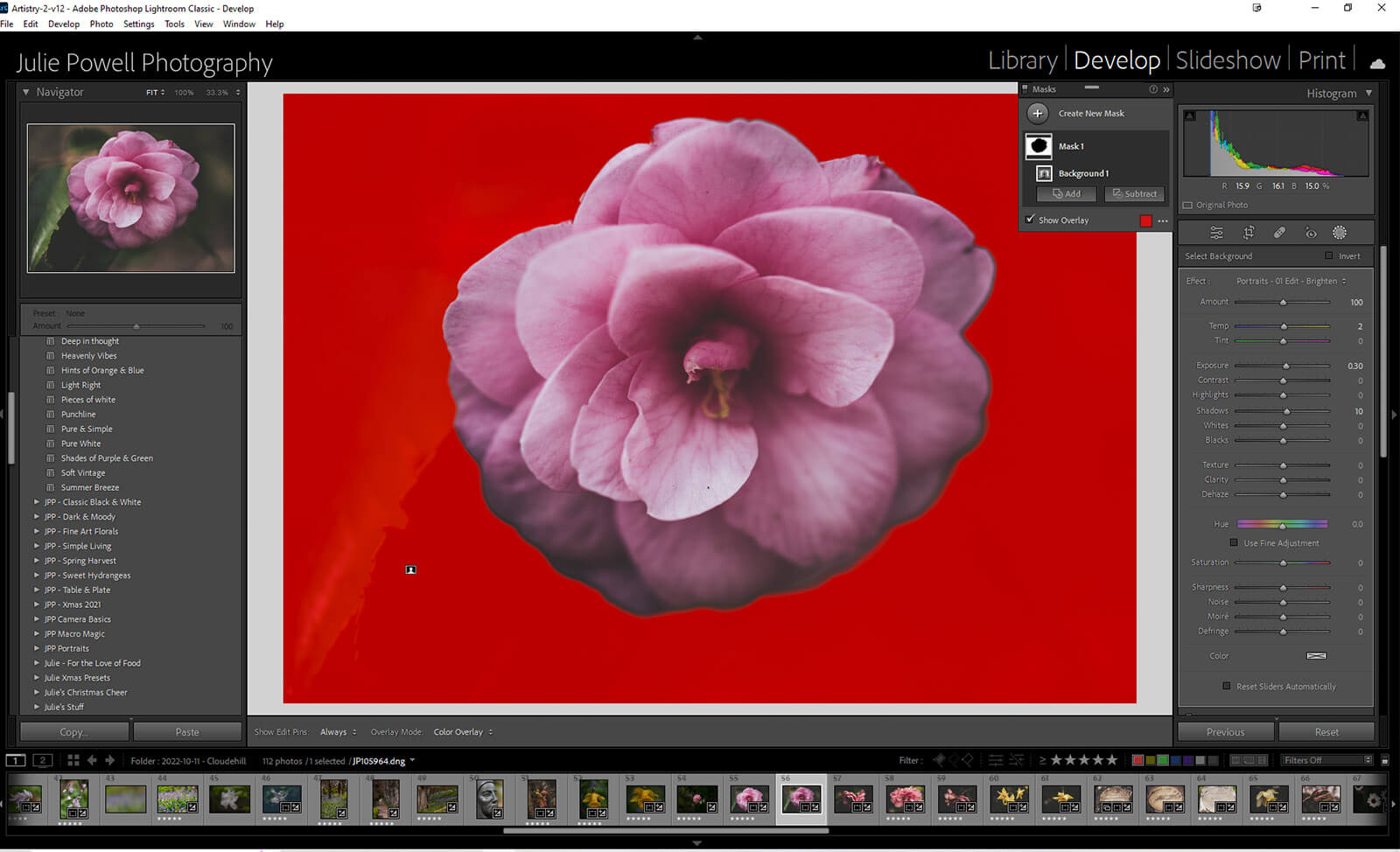 Previously, you could select the background by inverting a Select Subject mask. Now, there is a direct Background Select with a single click. This allows you to edit your background independently from your main subject, whether that is a person or a flower (or something else entirely).