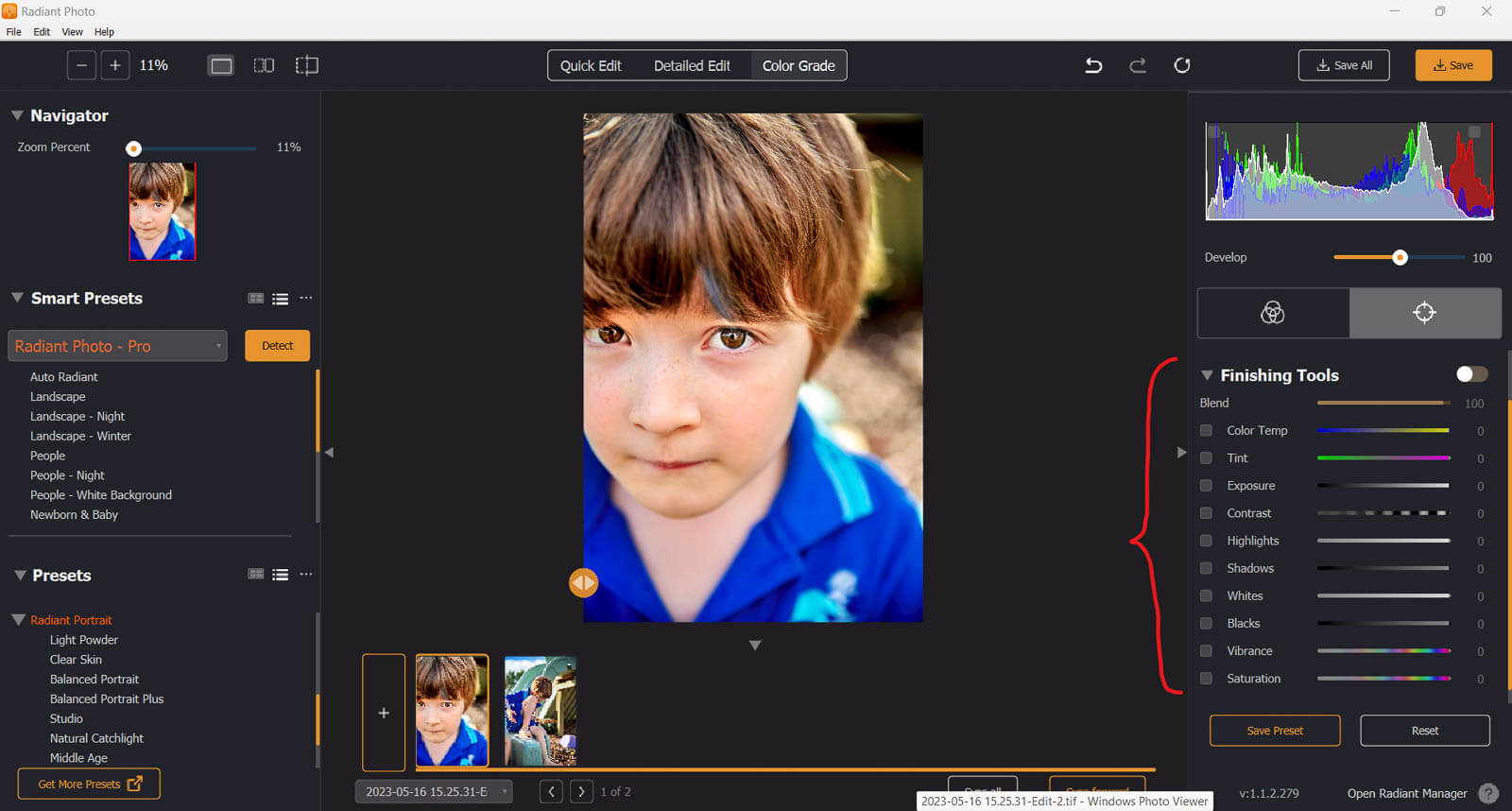 Next, adjust the look of the photo with Radiant Photo Color Grade LOOKs