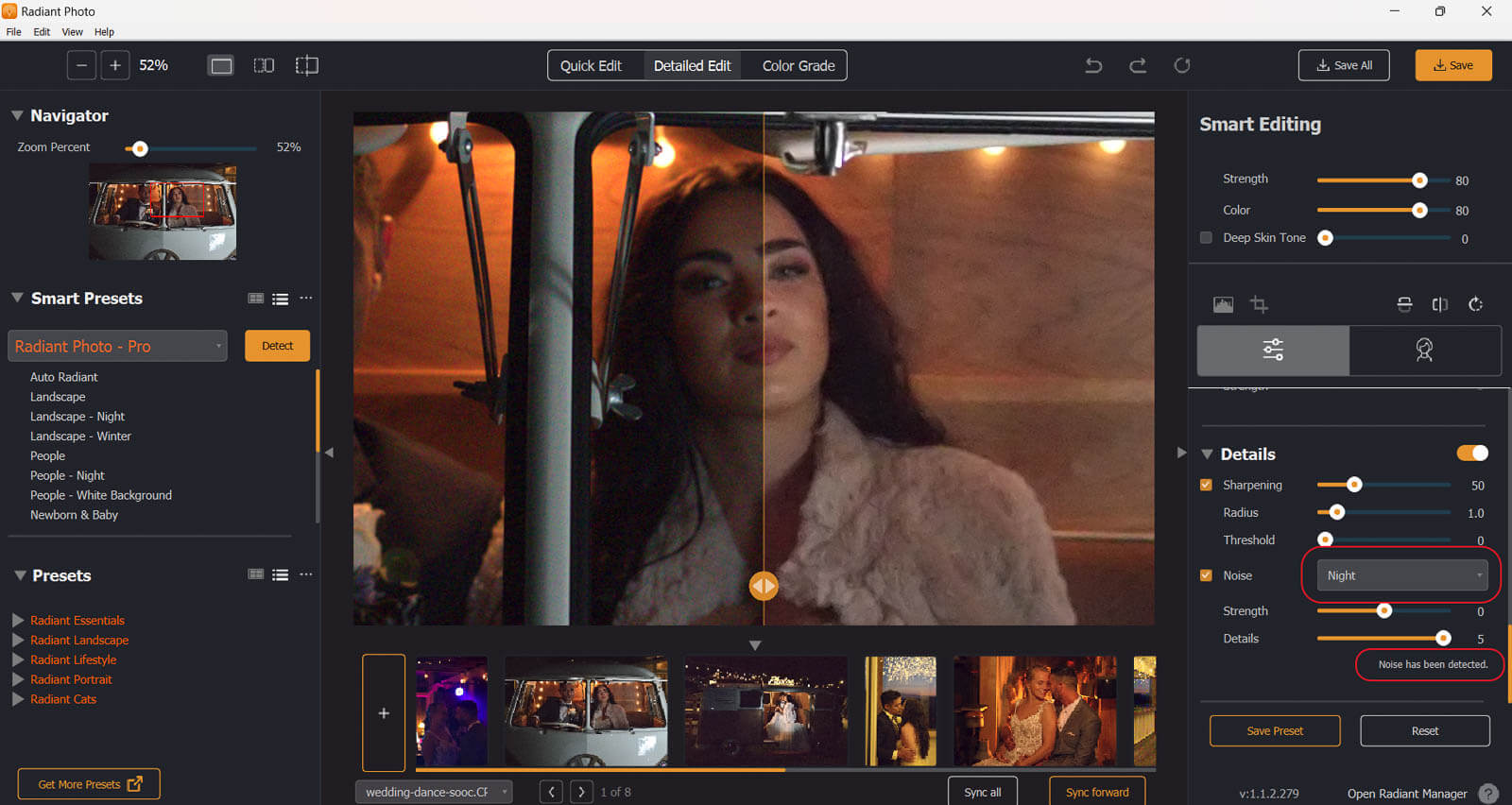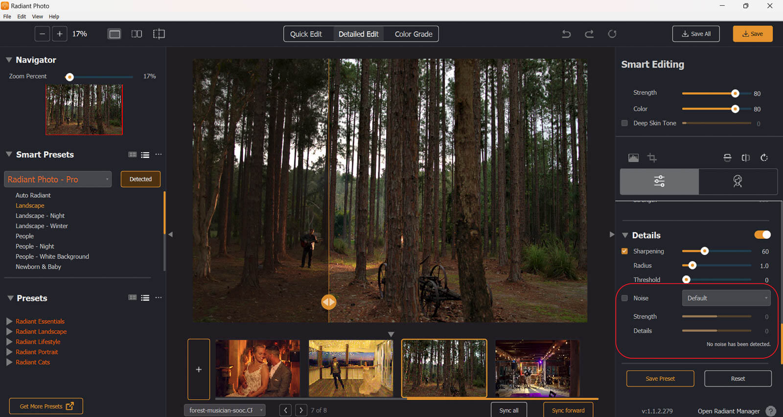 Because Radiant Photo processes noise automatically, it will only apply to photos where noise is detected. One of the five presets will be selected based on the content of the photo:
