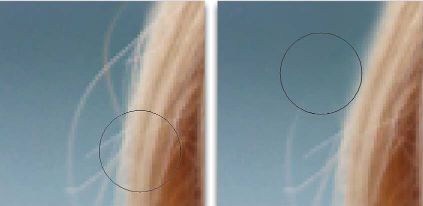 The Clone Stamp tool allows you to set a sample point (where the good pixels are taken from), and then paint into bad areas (to cover up damage or blemishes). This technique is very powerful, because the Photoshop paint engine can use soft brushes, which can soften the stamp’s edge, making the strokes more believable as they blend together better.
