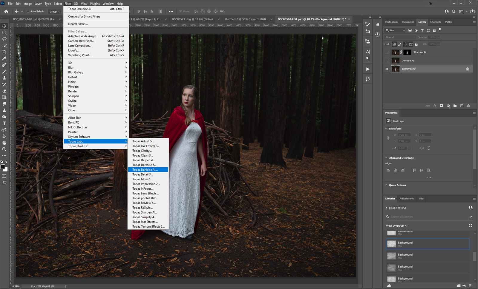 I was particularly looking at Sharpen AI and DeNoise AI. There were two images I really wanted to work with, both had noise and one had some camera shake as well. I brought the images into Photoshop and then accessed the plugins via the Filter menu. You can open the RAW files directly into both programs as well.