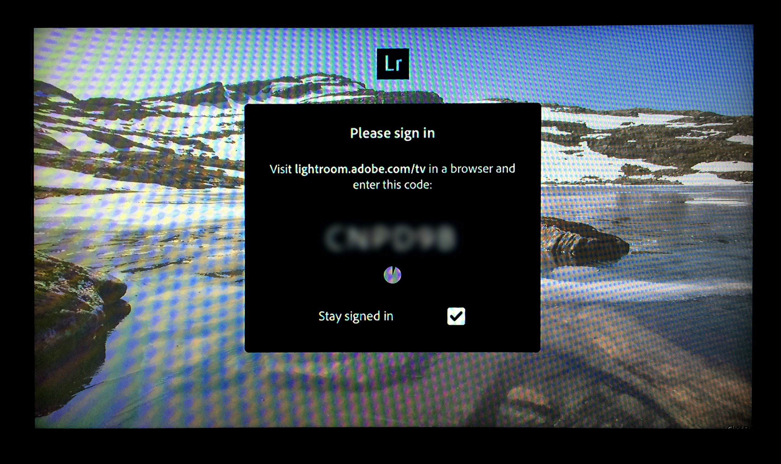Once installed, go ahead and launch the app. You’ll need to sign in and like most apps on the Apple TV, Lightroom gives you a code to enter on https://lightroom.adobe.com/tv. On the website, you’ll need to sign in with your Adobe ID and enter the confirmation code displayed on the Apple TV.