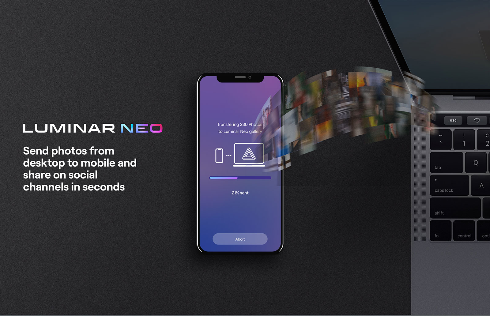 After editing comes another important yet sometimes tedious step in the artist’s workflow: exporting images from desktop to mobile in order to share them. Today, the sharing process is complicated and requires third-party services. Syncing to cloud drives is helpful, but what is really needed is a round-trip experience that fully integrates mobile devices with desktop editing. Luminar Share does exactly that. With Luminar Share, we aim to completely remove exporting complications and give artists the possibility to share their work in one click directly from the desktop.