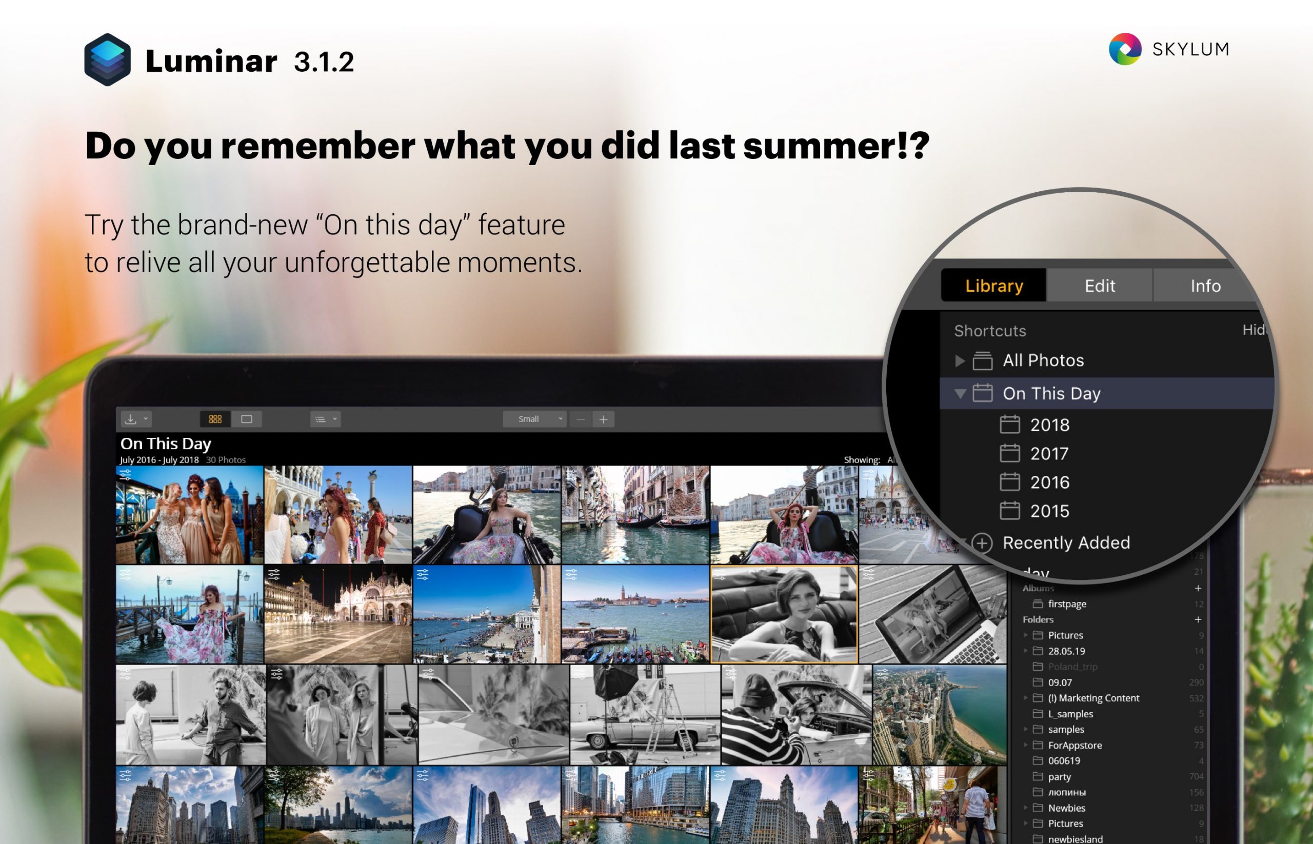 Skylum has released its latest update to its Luminar 3 software, version 3.1.2. The update features several performance and stability improvements, in addition to a new “On This Day” feature.
