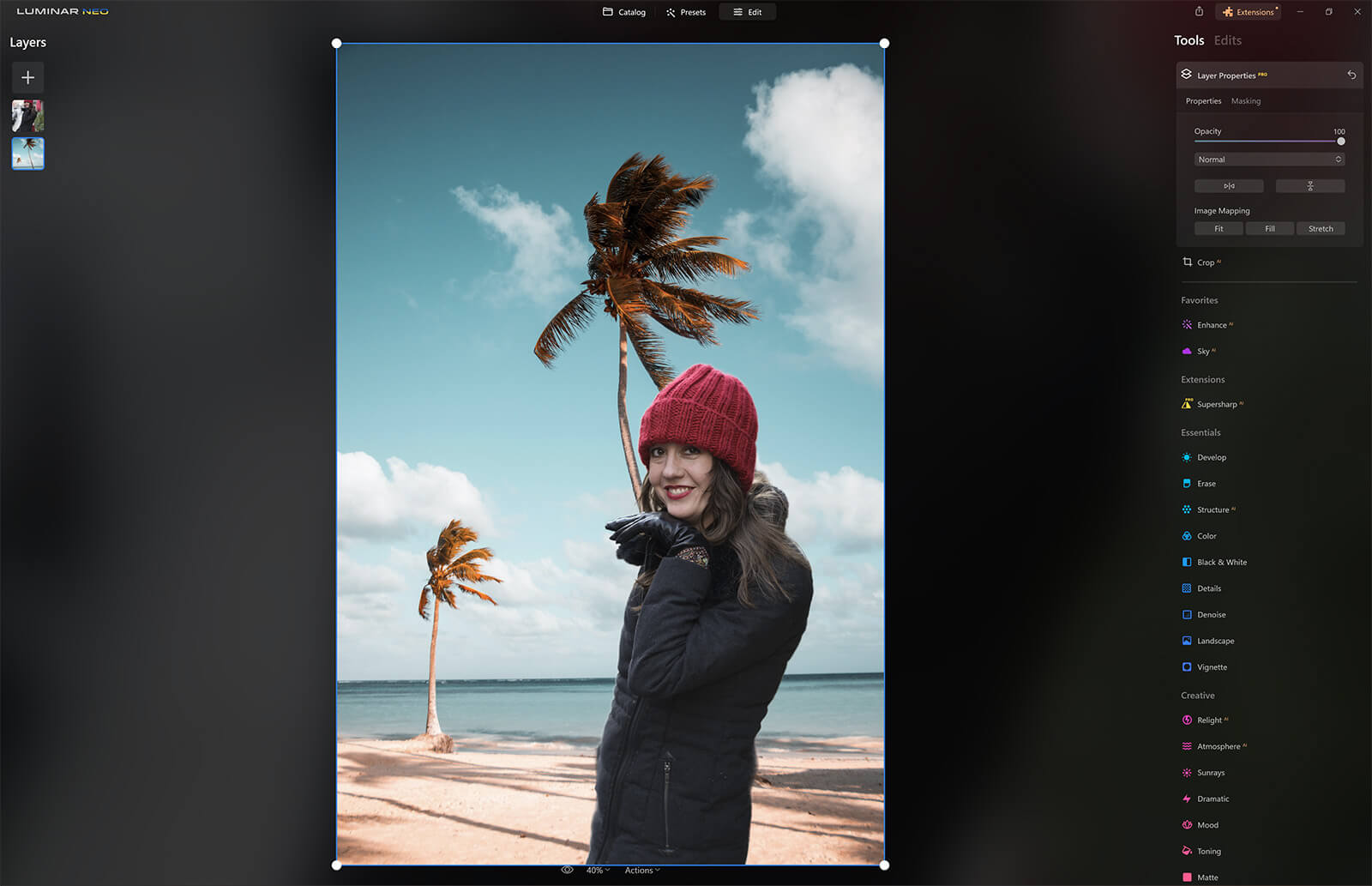 My wife has been dreaming of a beach vacation and I thought, what better opportunity than this to give her one? Or at least a picture of one. This is where Luminar Neo comes in.