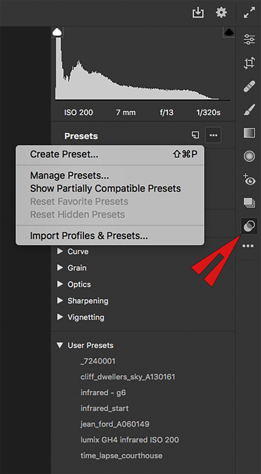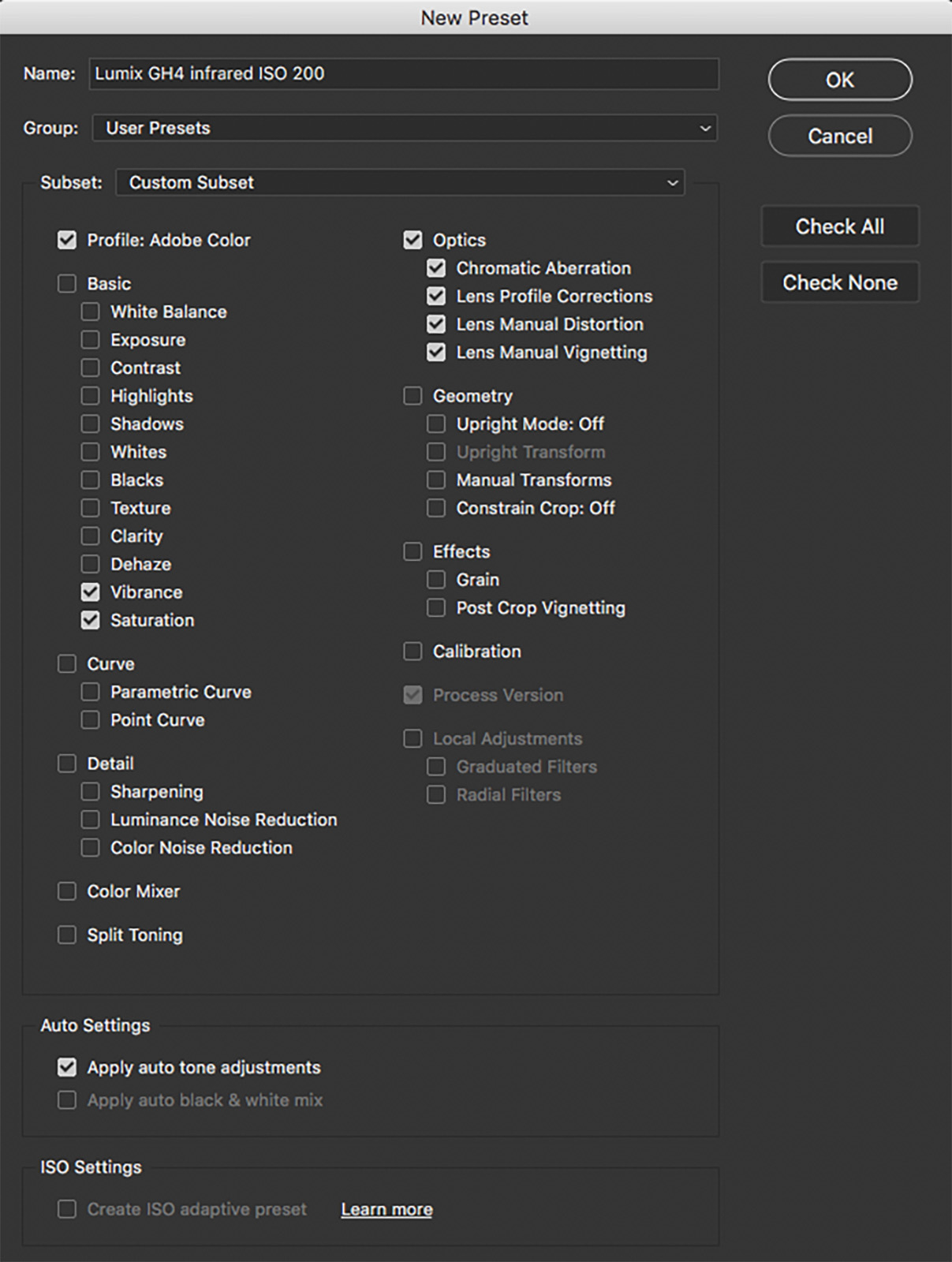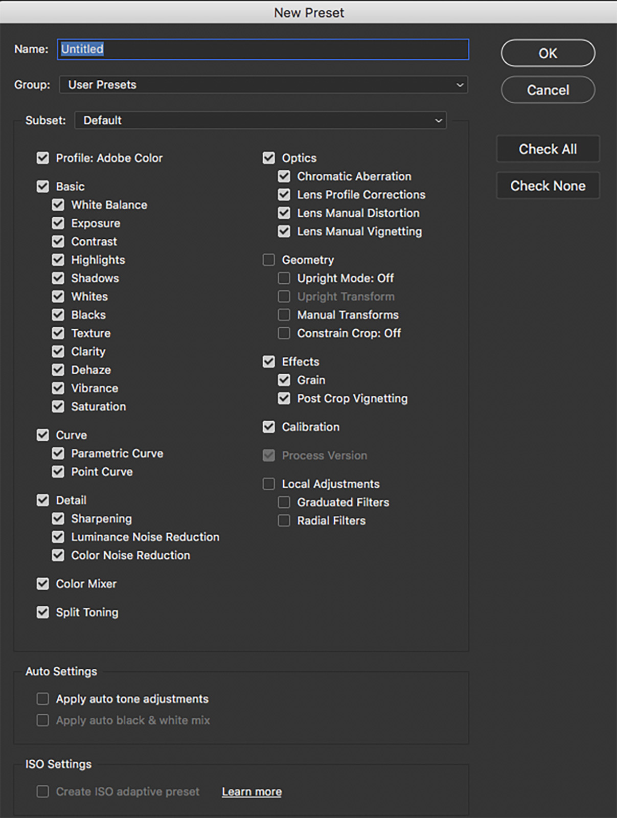 Once these settings are in place, save them as a preset. Once the preset is in place, click on the gear icon and choose RAW Defaults. In the global menu, choose the preset you just created.
