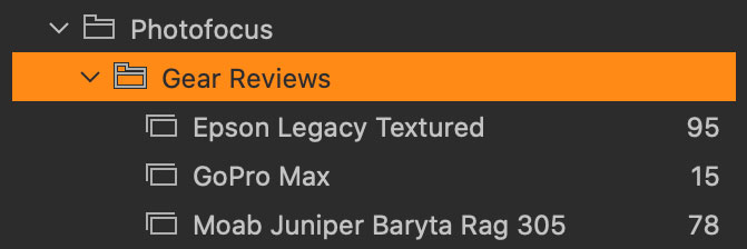 What happens if you don’t have a specific project you’re working on? Well, simply put, that’s when you would take projects out of the mix. In this example, I have a main Photofocus group and a sub-group called Gear Reviews. Inside of that I have individual albums for each product I have reviewed.