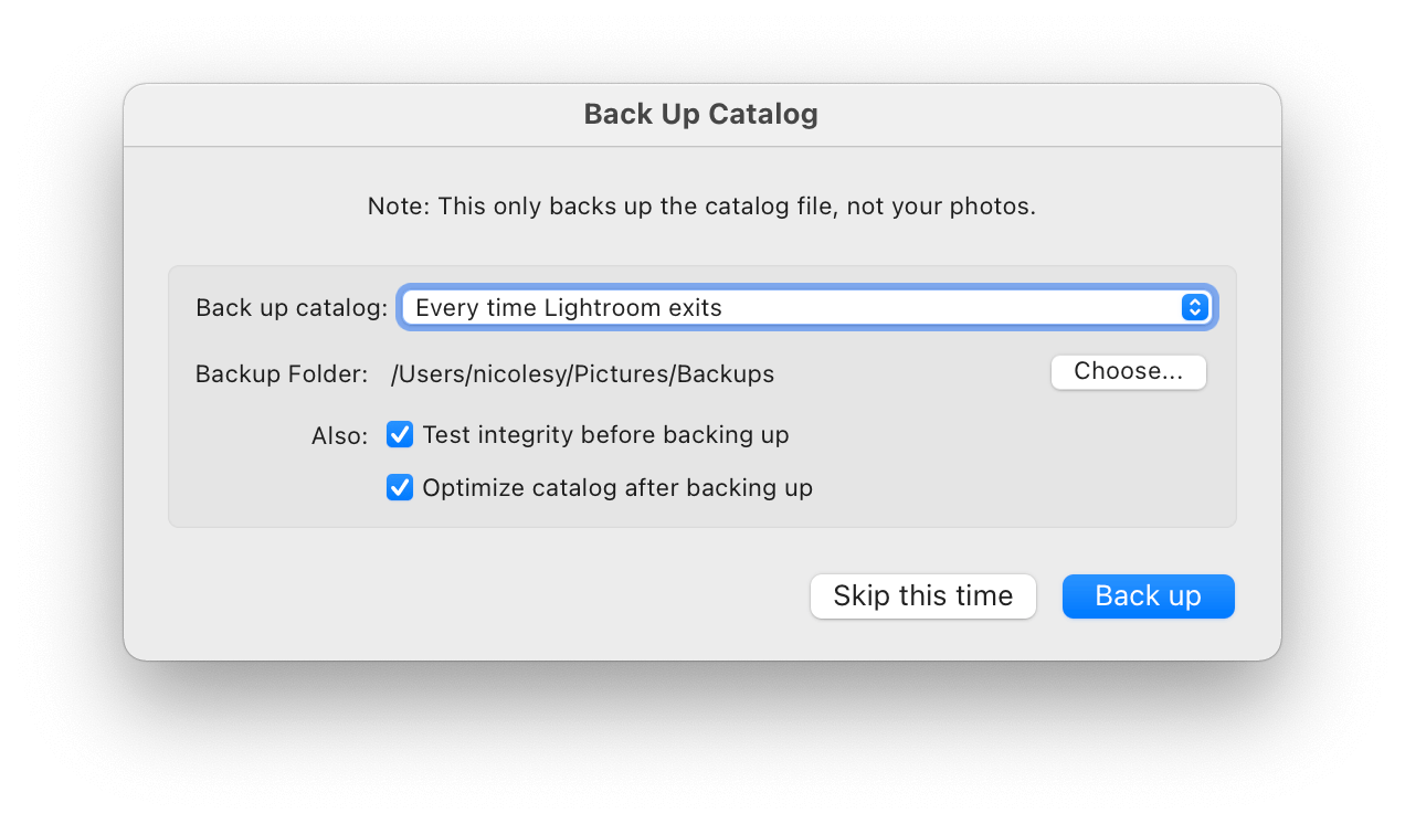 The sad truth is that software can fail us. Most digital asset managers give you the option to backup your catalog. While it is easy to ignore, it’s a smart thing to do on a regular basis. Without regular backups, you risk losing all of the work and organization if the catalog becomes corrupted.