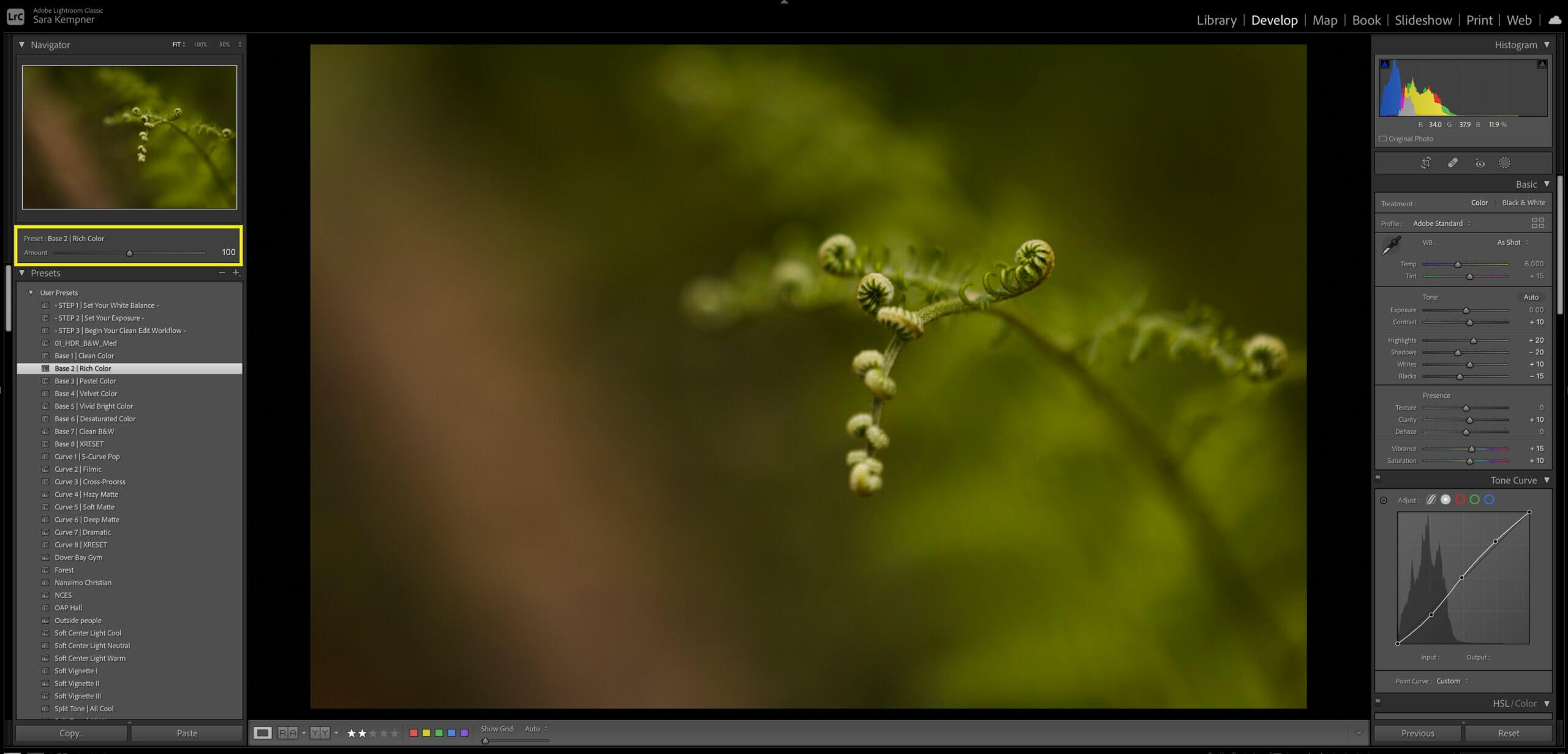 Once a preset is applied, the Preset Amount slider becomes active. Using the quick slider tool, you now have the ability to increase or decrease the intensity of a preset. The slider default is 100, which is the same as the regular preset application.