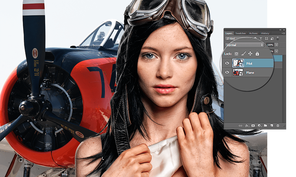 Imagine your assignment is to create a World War II calendar using twelve models and several vintage planes. The art director wants the twelve final images to have the same color and special texture effects. You set out and photograph several vintage airplanes. Then you arrange a photo session with twelve models using the same lighting set up. You spent the majority of your time creating a great mock up in Photoshop using a model and a plane. The client and art director love it. So far so good. Now they request you do the same for the other eleven models and planes. Trying to duplicate the exact effect eleven times is time consuming and the effect will never look the same. This is where Smart Objects come to your rescue!