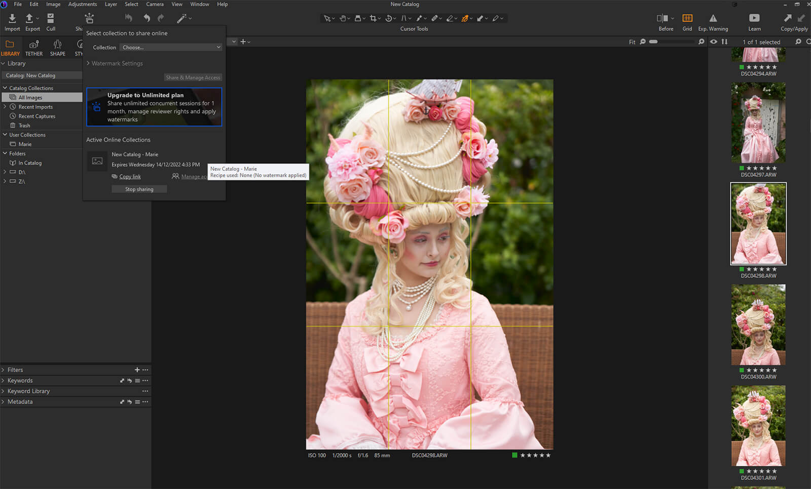 Capture One Live (labeled “Share Online” in Capture One) allows you to shoot and instantly share your images in real-time, remotely with clients or creative directors that can’t be on set. Get instant feedback on photos while you’re still on set, now even faster and easier than before. It’s free to use and collaborators can access images and leave feedback from any device.