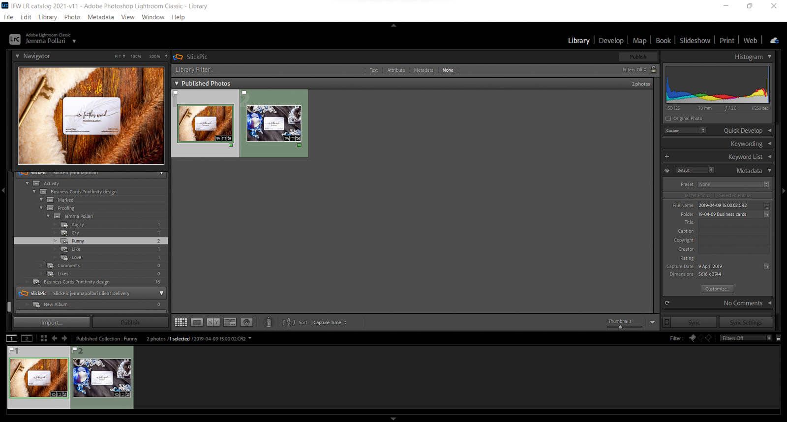 Once you have the settings done, it’s as simple as drag and drop to get your photos into SlickPic from Lightroom. Select the photos you want to upload, and drop them into the New Album underneath SlickPic in the Publish Services. Right-click to rename the album.