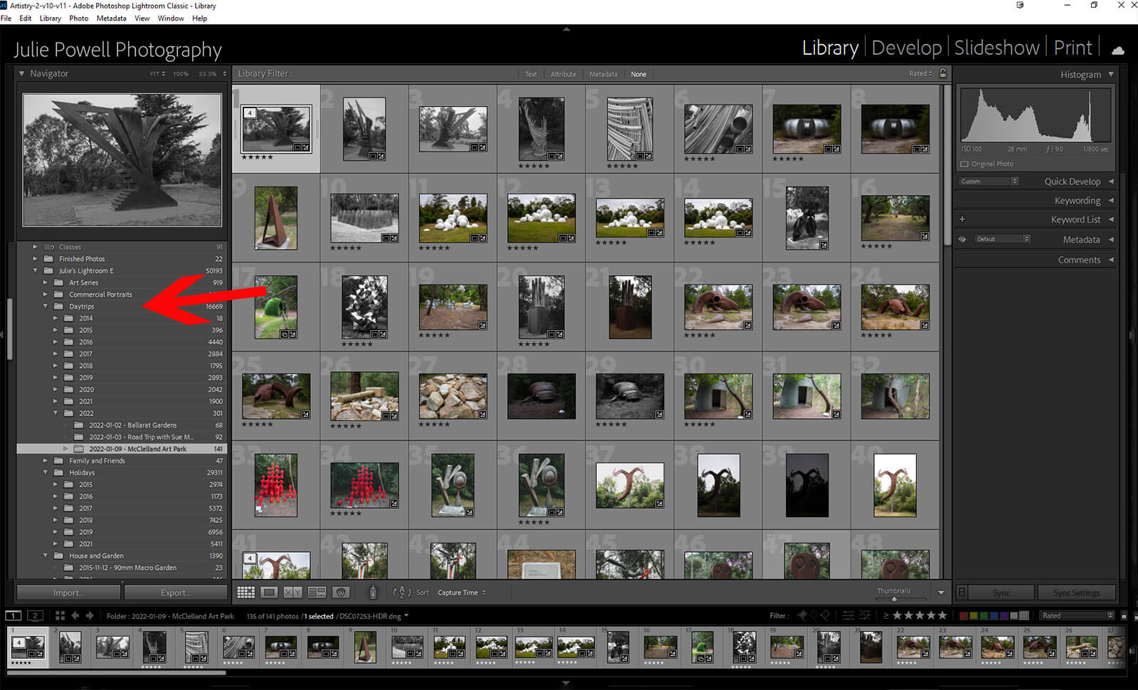 Think of it as storing all the same types of activities in the same folder structure. For example, in the Holiday Photos folder, I have 2021 and have my recent trip down the Great Ocean Road. As well as a separate folder for each mini-holiday we actually managed to have in 2021. I have folders for different years, but then the individual trips in named folders.