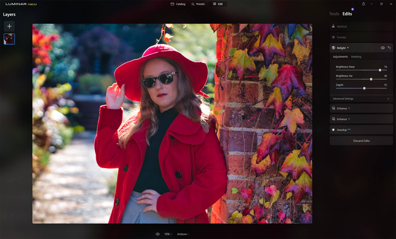 Just remember if you want to make any adjustments to that layer to pop into the Edit tab and adjust from there, otherwise, if you click on RelightAI you will add another layer to the existing one.