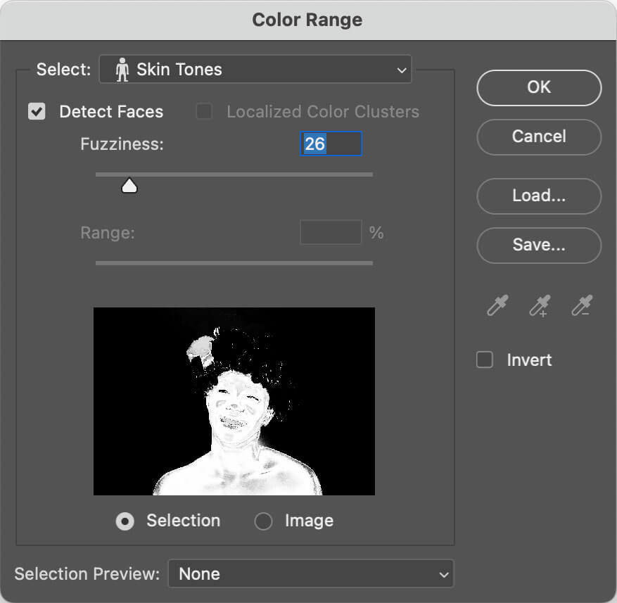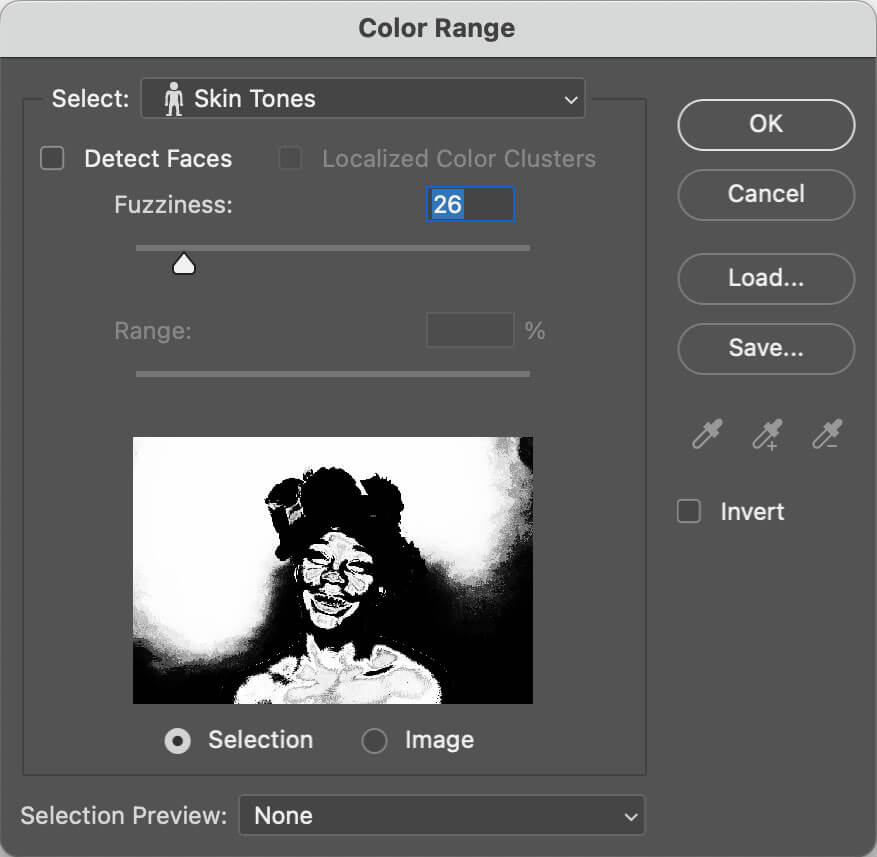 To get started, go to Select > Color Range. Then choose Skin Tones from the Select drop-down.